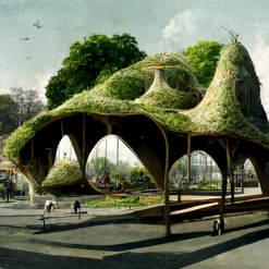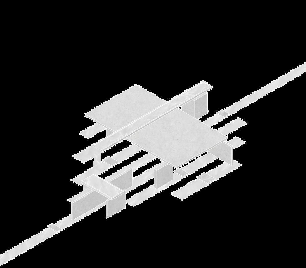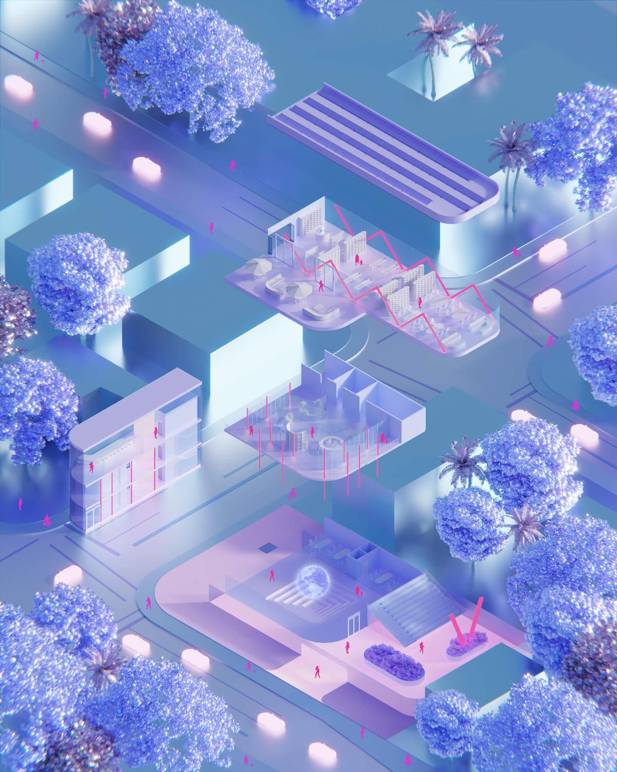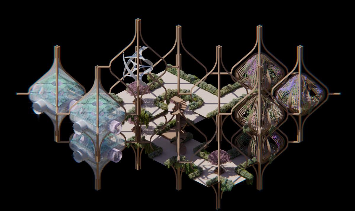 A series of components was created, each able to connect with the other to create a flowing urban fabric raised on stilts and be nestled in a sort of artificial canopy.