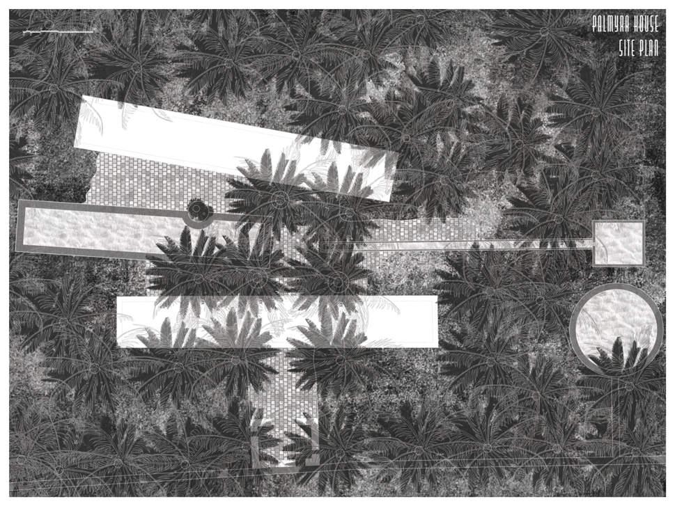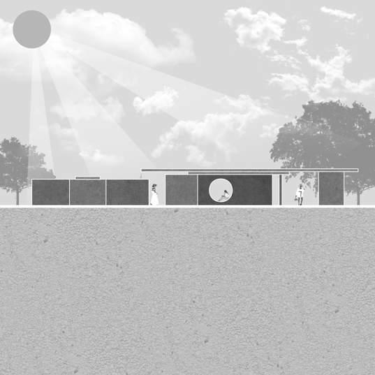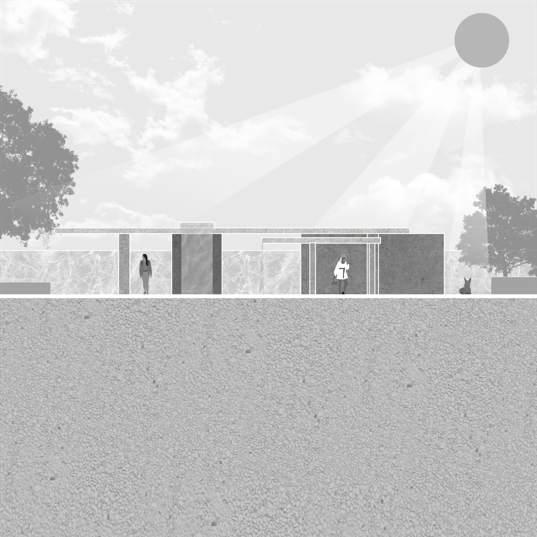 The pavilion was designed to create a meditative space in the cemetery grounds, to give a place that forces you to pause and reflect on the loved ones you've lost and remember that they will always be with you. The concept of the Lethe river came from Greek mythology, in which this river is the place where souls drink from to forget their past lives upon entering the underworld. I wanted to take this idea and turn it around. In a way, the water in this river holds the memories of those past, their voices. Thus, I decided to make water and sound the main focal point of the design. Taking the general form of the pools from sound waves, I incorporated the canalized Miami River into the design, connecting the design into the place and thus tying the design together. The sparse assortment of walls lead you into the space and then force you to stop. Two waterfalls create the illusion of coming into a sort-of grotto-esque space and make it