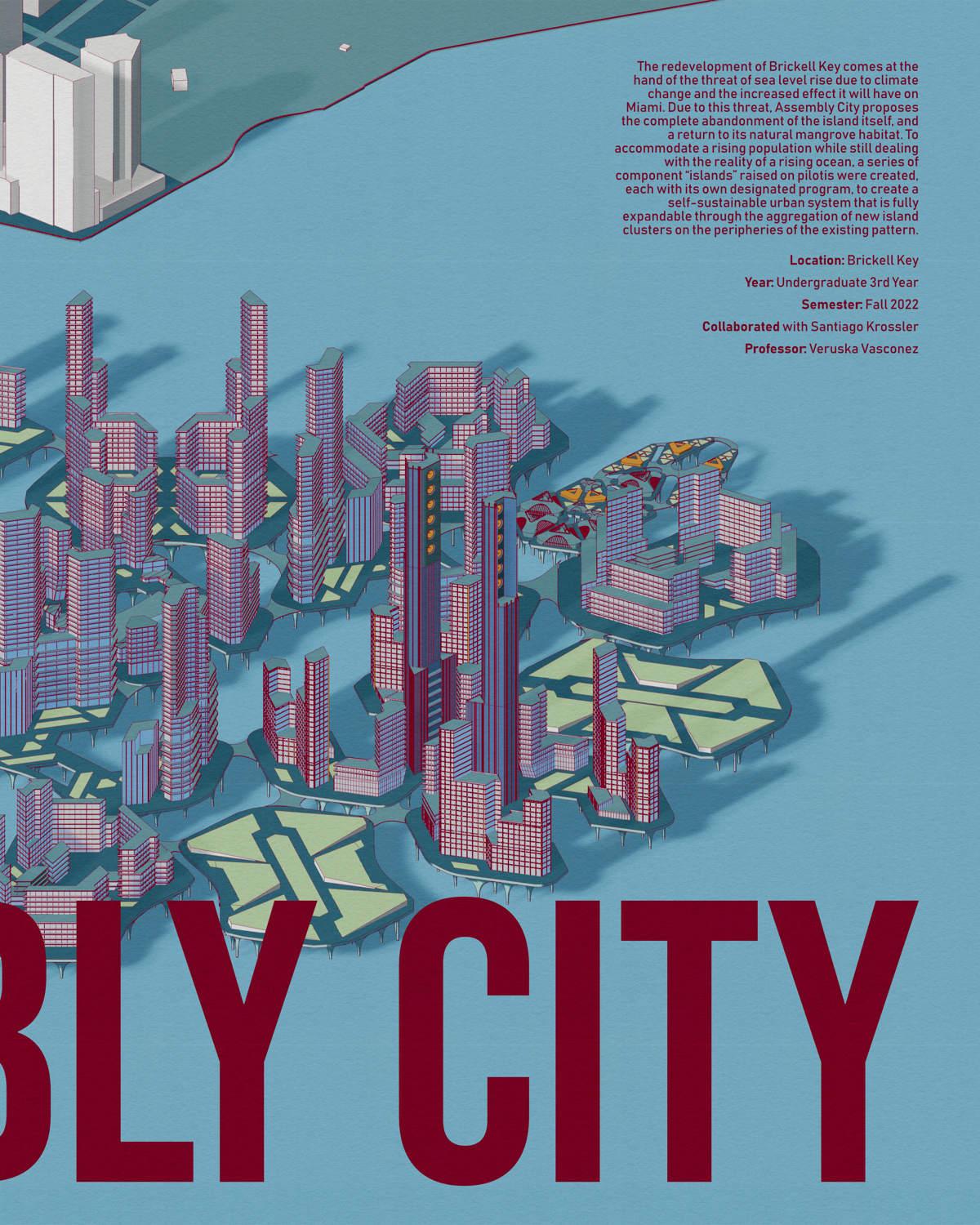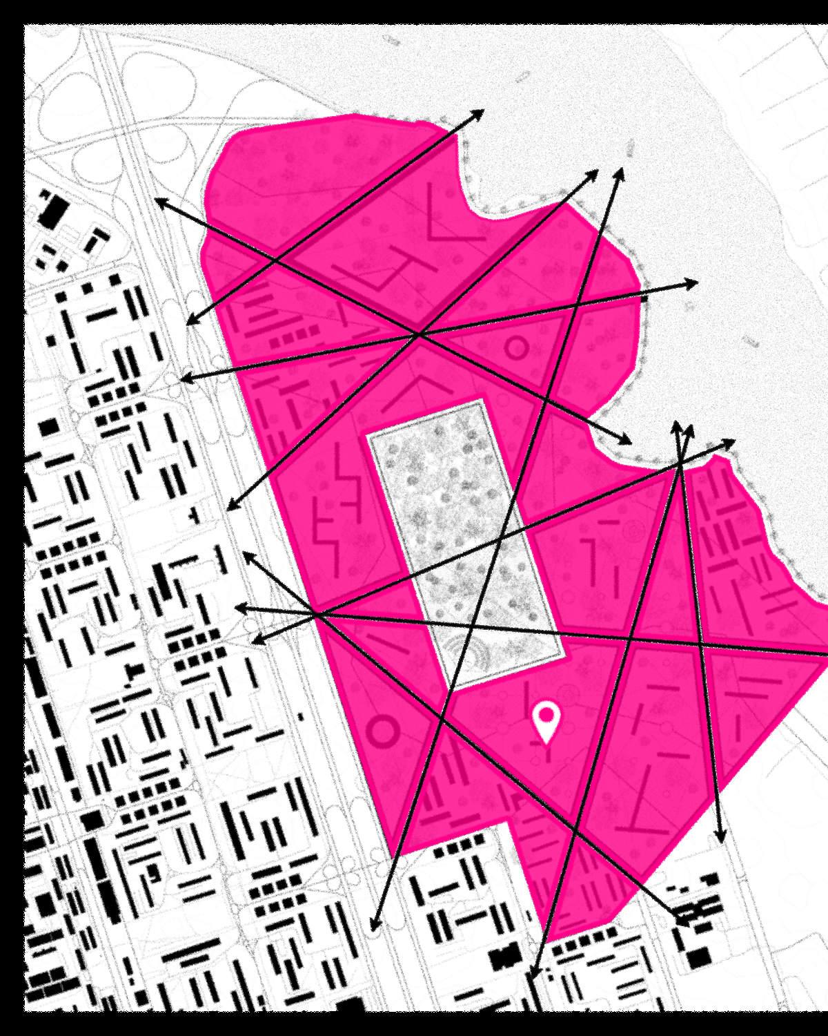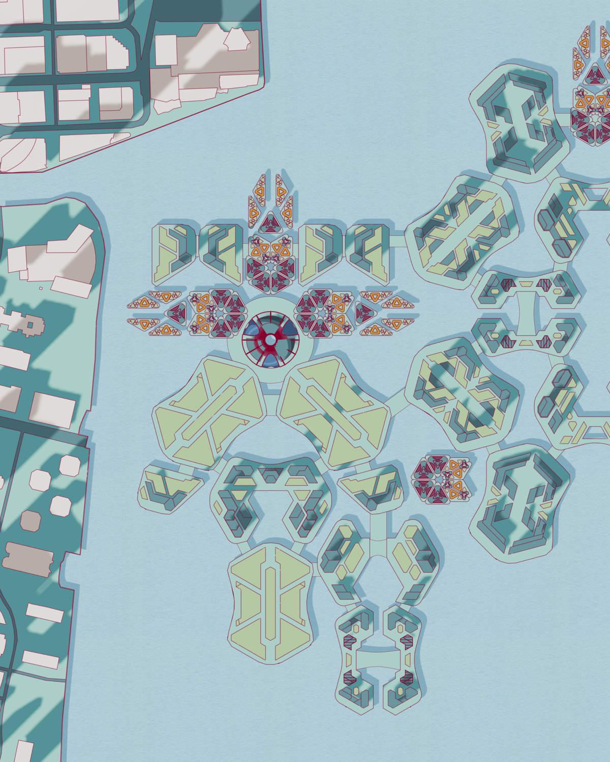 The ECO-Nest proposes a modular, component based urban system to be installed in Governors Island in New York City. Inspired by concepts of video game urbanism and designed to provide refuge from the bustling city, the system is flexible and expandable to accommodate growth. The raised platforms allow the system to permeate the existing coastline, blurring the demarcation of land vs water and allowing it to function even under flooding conditions in the future. Designed from a “catalog” of different functions, the new urban proposal would enable a certain form of “glamping” (which already exists on the island) as well as new functions of play, meditation, and urban circulation.