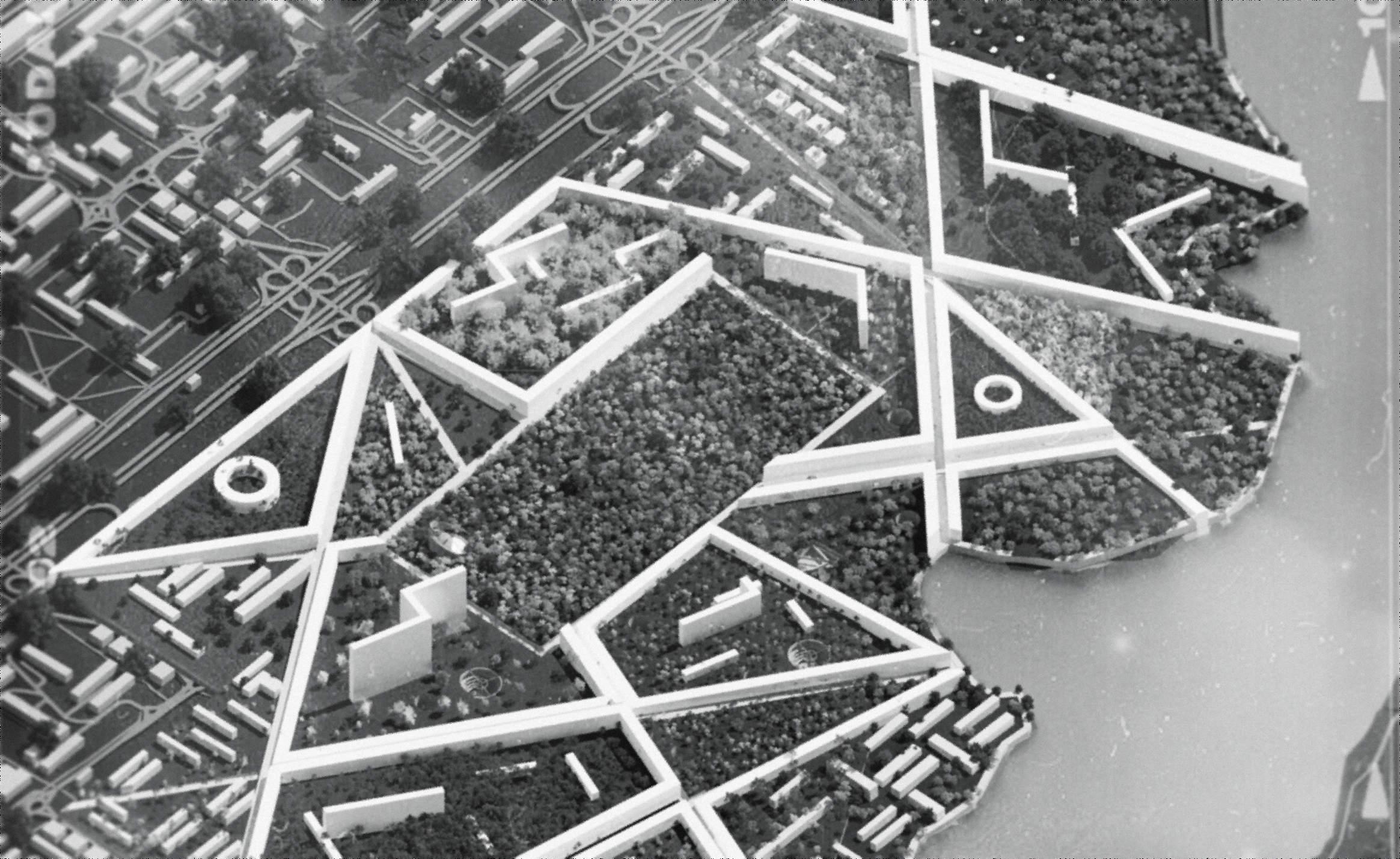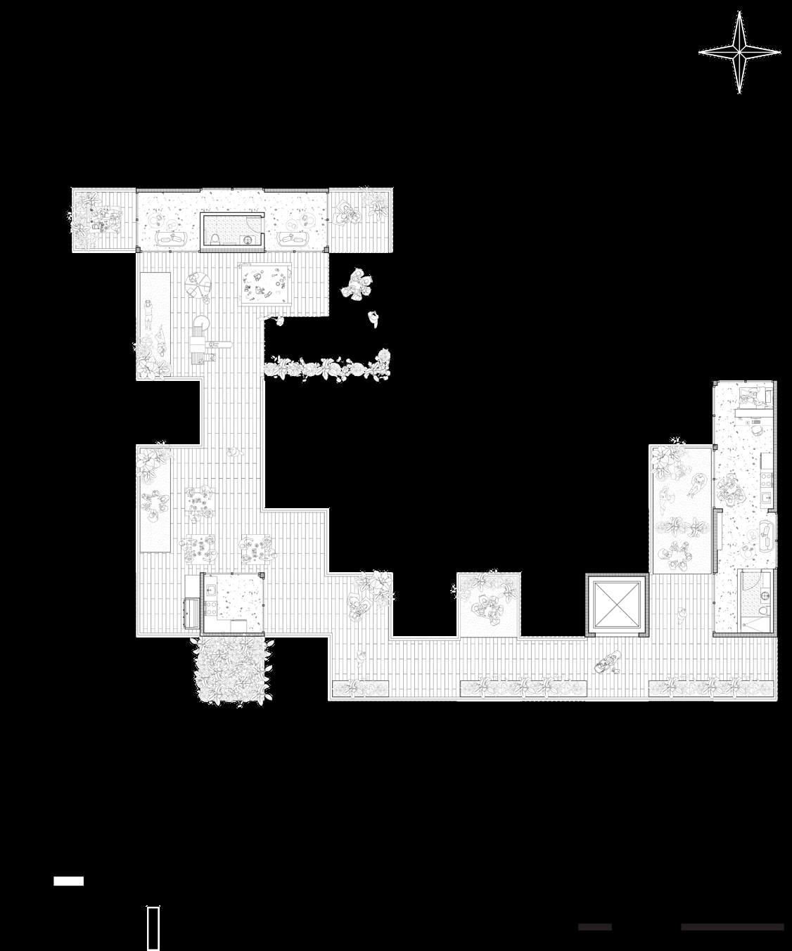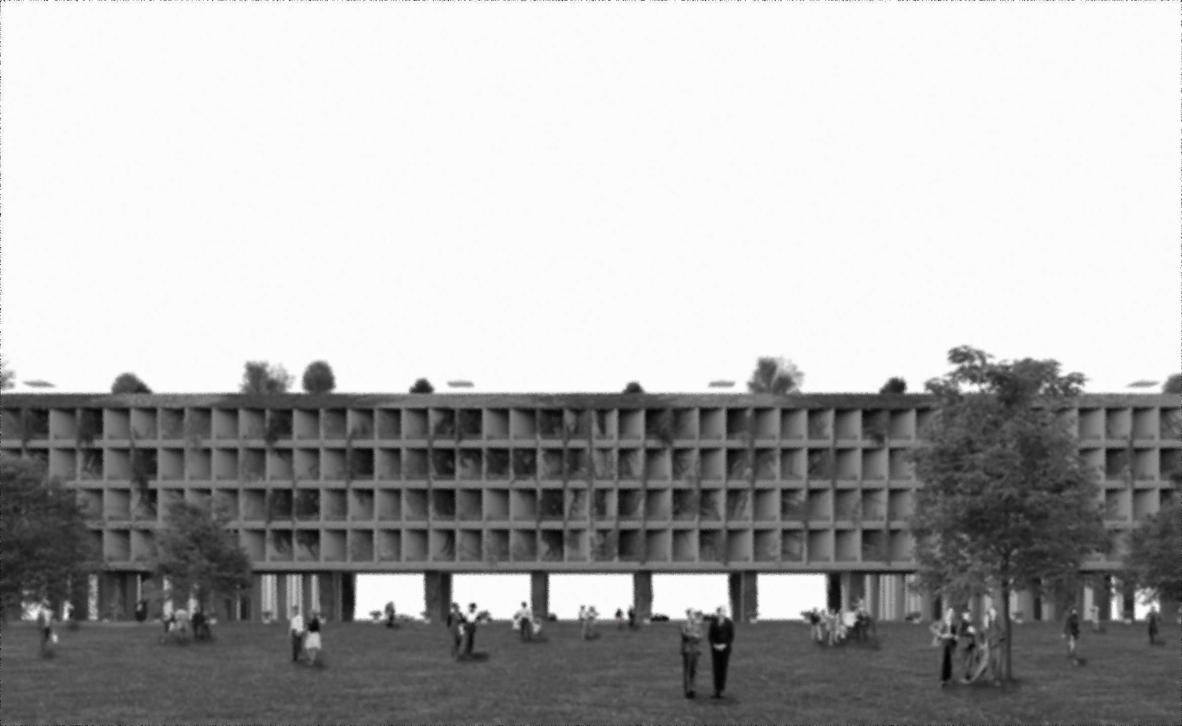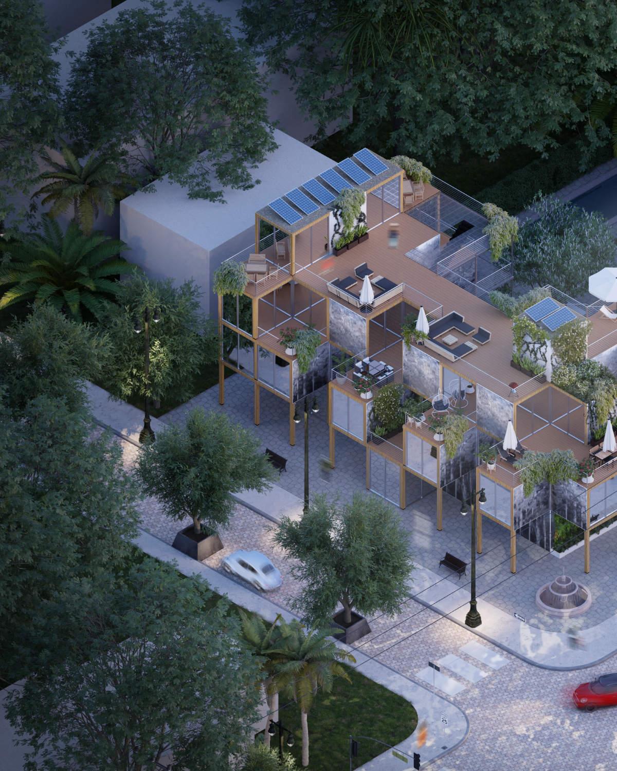 The resultant space would be lively and highly pedestrian, with green spaces for the residents to enjoy as well as having work and retail spaces in the commercial object buildings inside each compartment.