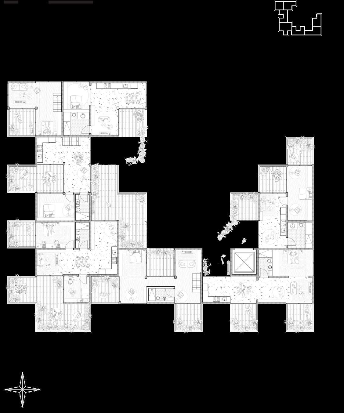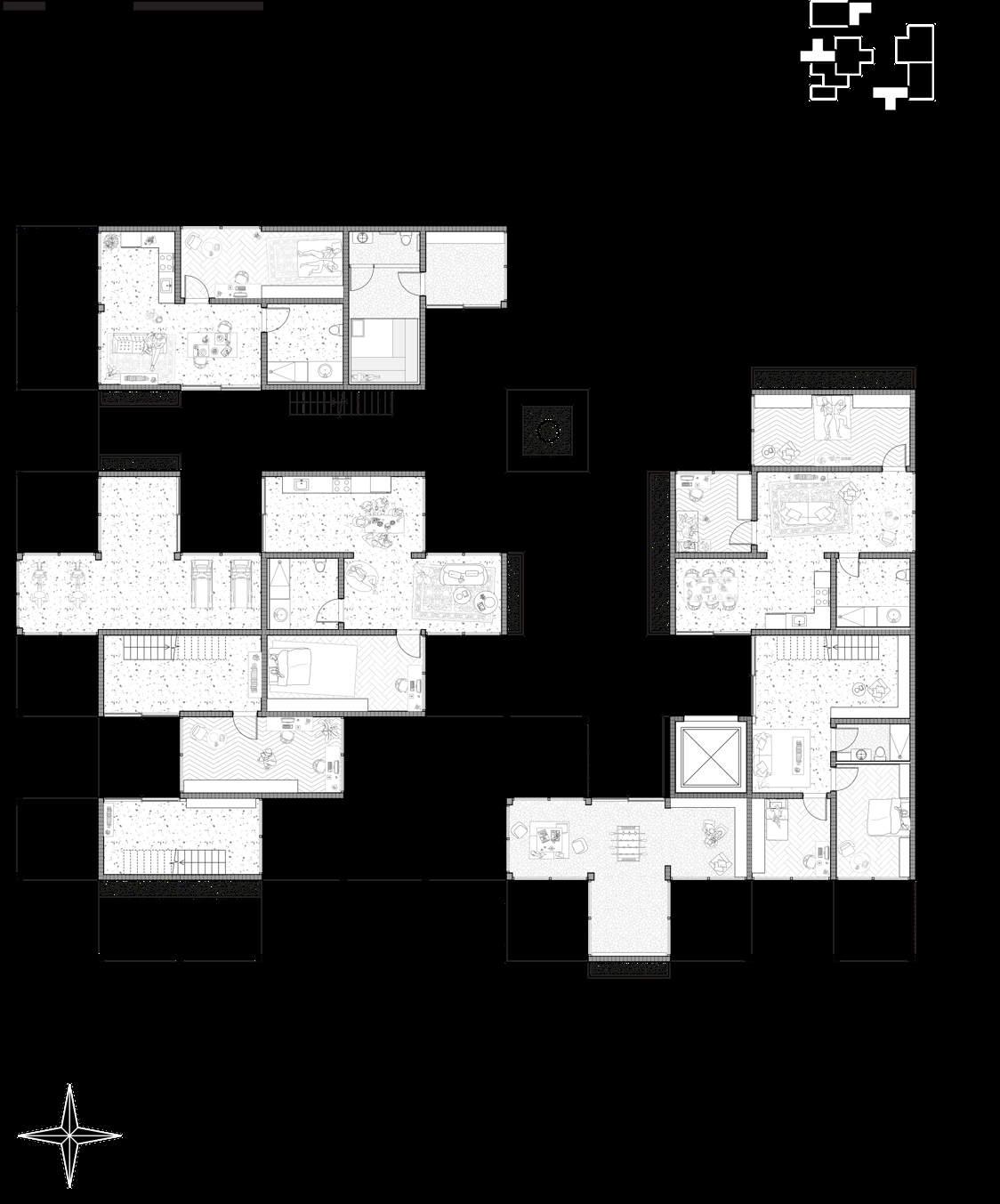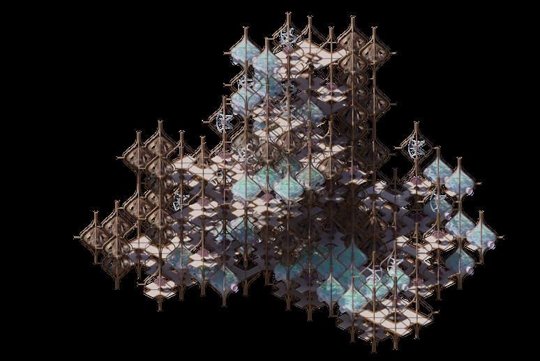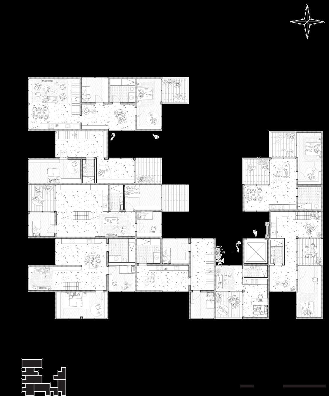 Each of the components can be clustered into a larger series, each with individual programs. The resulting cluster “catalog” could then be aggregated further, creating an even larger fabric with each cluster “villages” being interconnected.