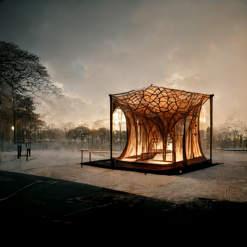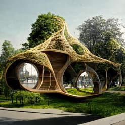 Rather than randomly “pixelating/voxelizing” the mass of the structure, the anatomy of a tree was used to base the form of pixelation. The first floor would be the “trunks,” pulled back and split into separate masses, creating large spaces punctured by glulam columns, as if one was walking through the forest. The second floor would extend significantly out over the first, as if they were the base branches, the thickest ones that extend the most. The third floor, while still branching out would be “thinned” out, much like the branches of a tree when you go up. The fourth floor would house a roof terrace, with very little mass, reflecting the canopy of a tree