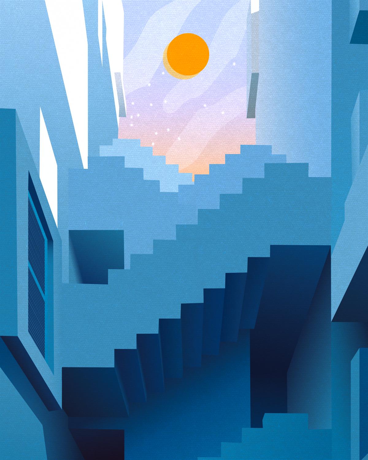 The Western-facing wall features a circular cut-out that frames the view of the setting sun over the cemetery, provoking thought of all the souls departing for the afterlife