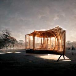 A recycled engraved steel facade cladding would envelope the wooden structure, which combined with the metal catwalks for exterior circulation would flip the typical narrative of steel being used for structure and wood for cladding/ornamentation. The panels themselves will have pixelated images of the southern yellow pine forests where the wood was sourced engraved on them. The image itself would be split into four different “levels,” so that as you go up the floors, it is also as if you’re rising through the trees in the forest.