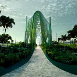 The raising of the components came at the face of sea level rise and flooding conditions that Governor’s island faces. By raising them, not only can the fabric continue to expand even after coastal areas are flooded, but the coastline is permeated, providing interest both on land and on the water.