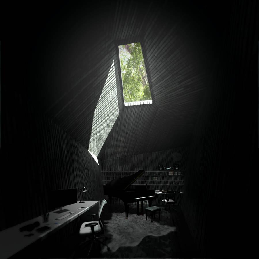 The project is called CODA: Komoerebi, connecting two separate terms: Coda referring to this conceptual house being designed posthumously for Sakamoto as well as this being my final design project of my Bachelors, and komoerebi referring to the concept for the design of the house.