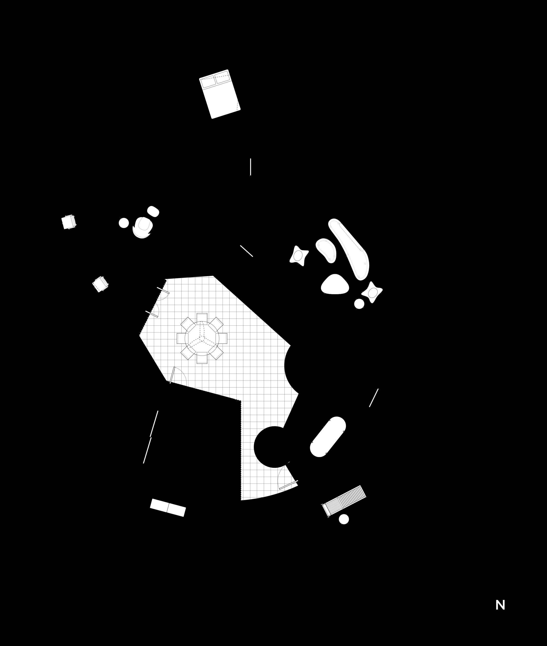The campus itself is known for the malpais landscape its built on, as well as the modernist structures designed by Mario Pani and Enrique del Moral, two of the leading modernist architects of Mexico. Centro Tlaltípac aims to marry the two, creating an orthogonal architectural system embedded into the landscape and creating a more symbiotic relationship between the two. The staggered orthogonal volumes are spread throughout the landscape, attuned to the respective topography and connected by pathways, creating a sense of exploration through the intensely rocky landscape.