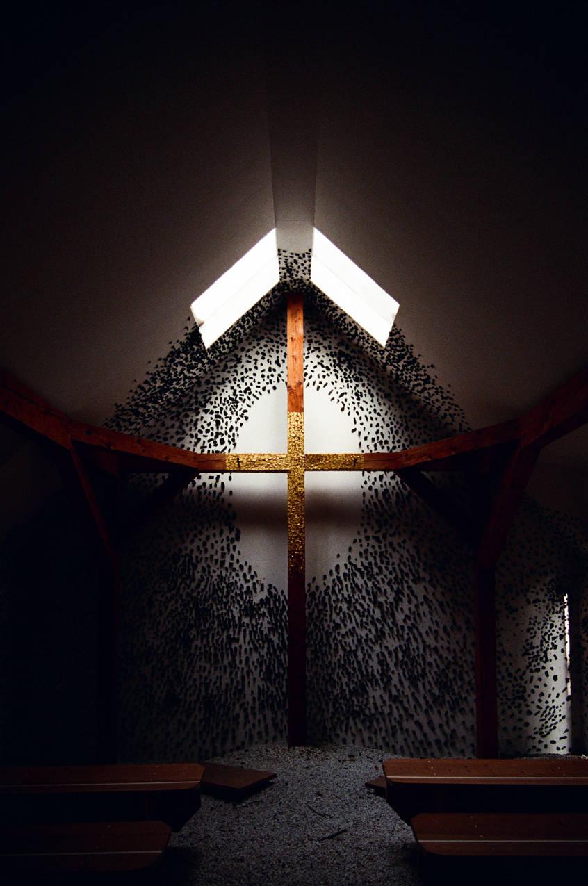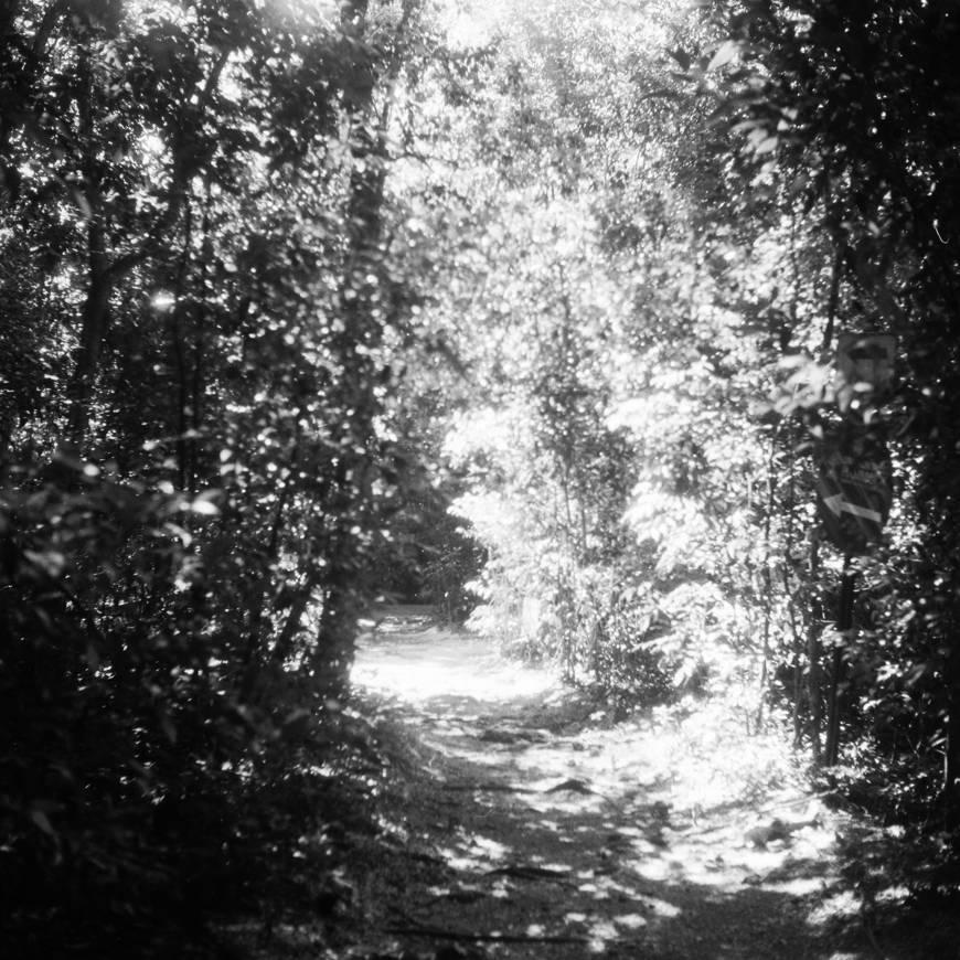 When first visiting the site for the purpose of this project, I was drawn to the way the light filtered through the dense canopy, and decided to use my 1960s film camera to purposely unfocus the image and only capture the light in an unfocused bokeh. Captured in black and white, this became the initial concept for the play of solids and voids.