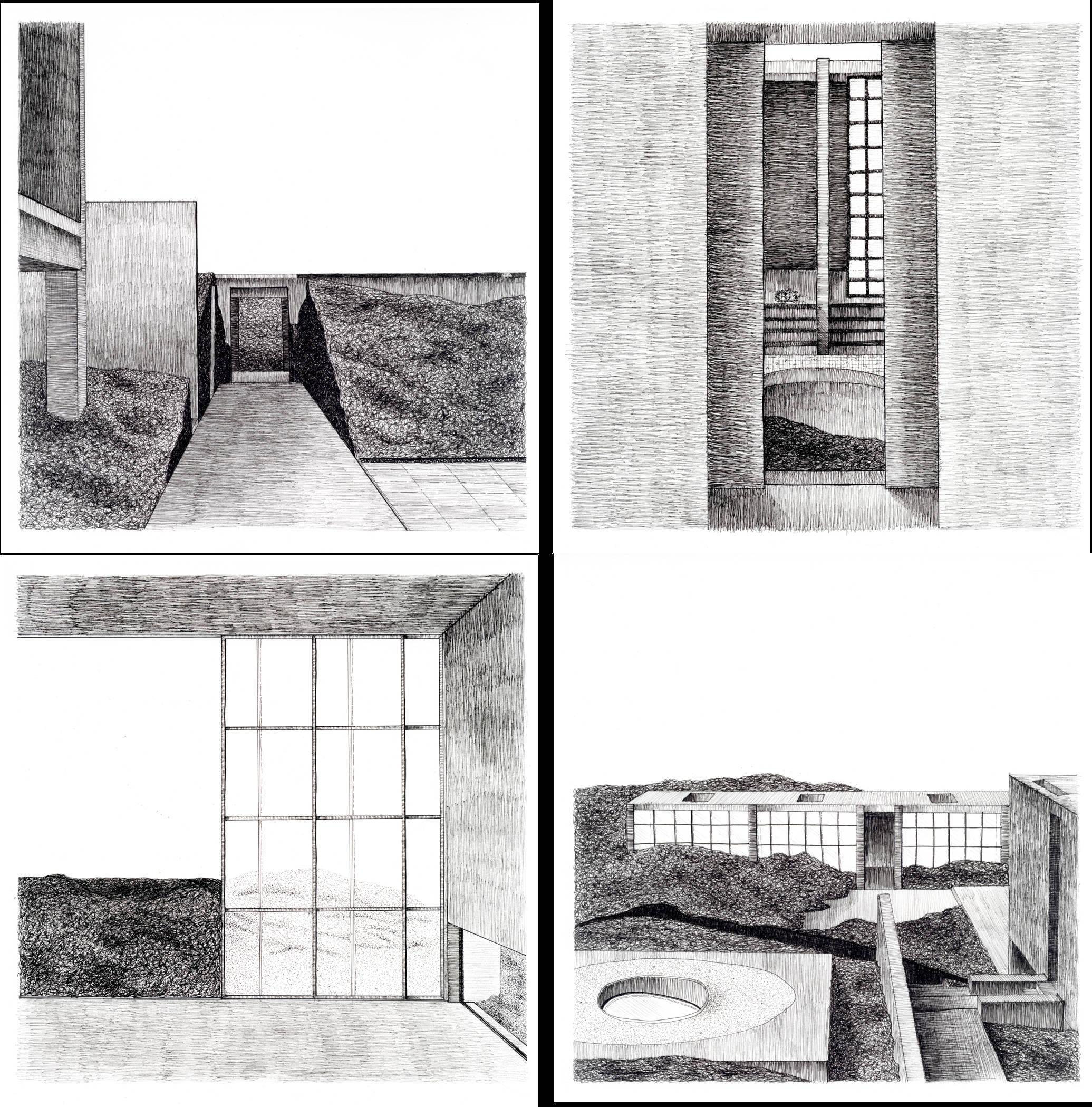 Samples from a class on the studies of Louis Kahn and Rafael Moneo through the act of drawing.