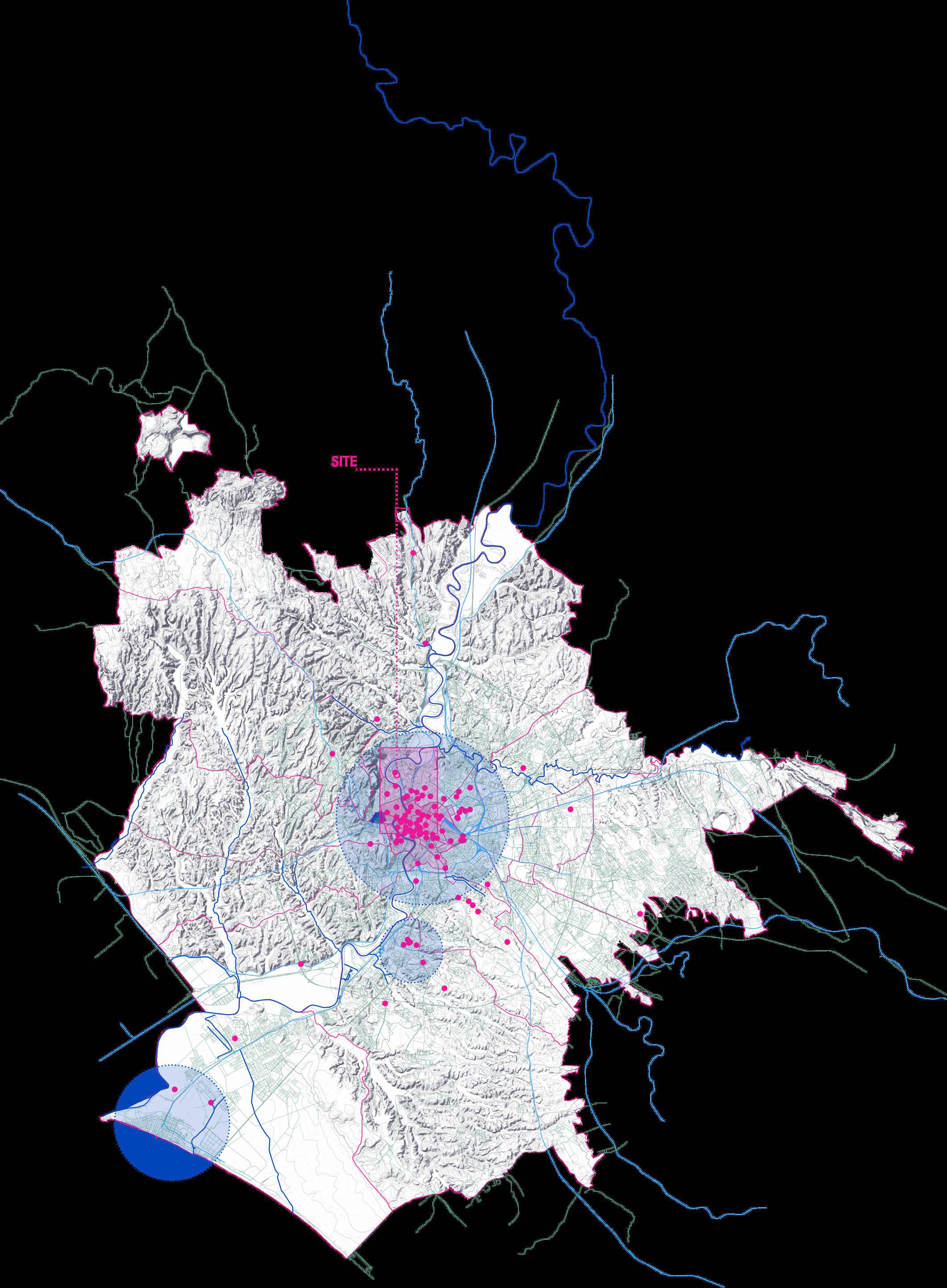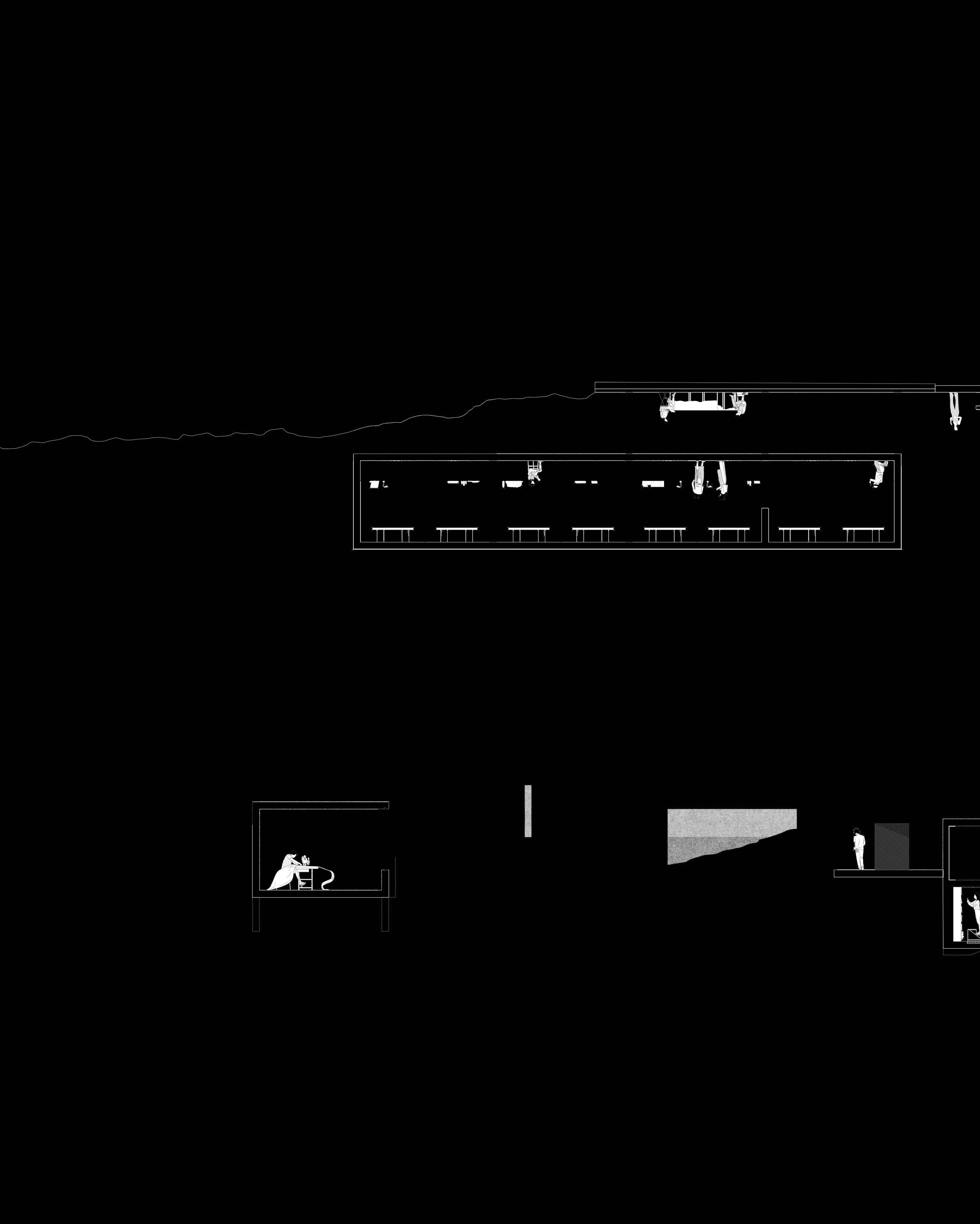 Proposed to act as a connecting point between practicing architects and university-level studies, it is located in the southern, more public section of the University City, on an untouched spot of malpais (the rock formation, created by the lava flow of the Xitle), allowing for architectural experimentation on the terrain.