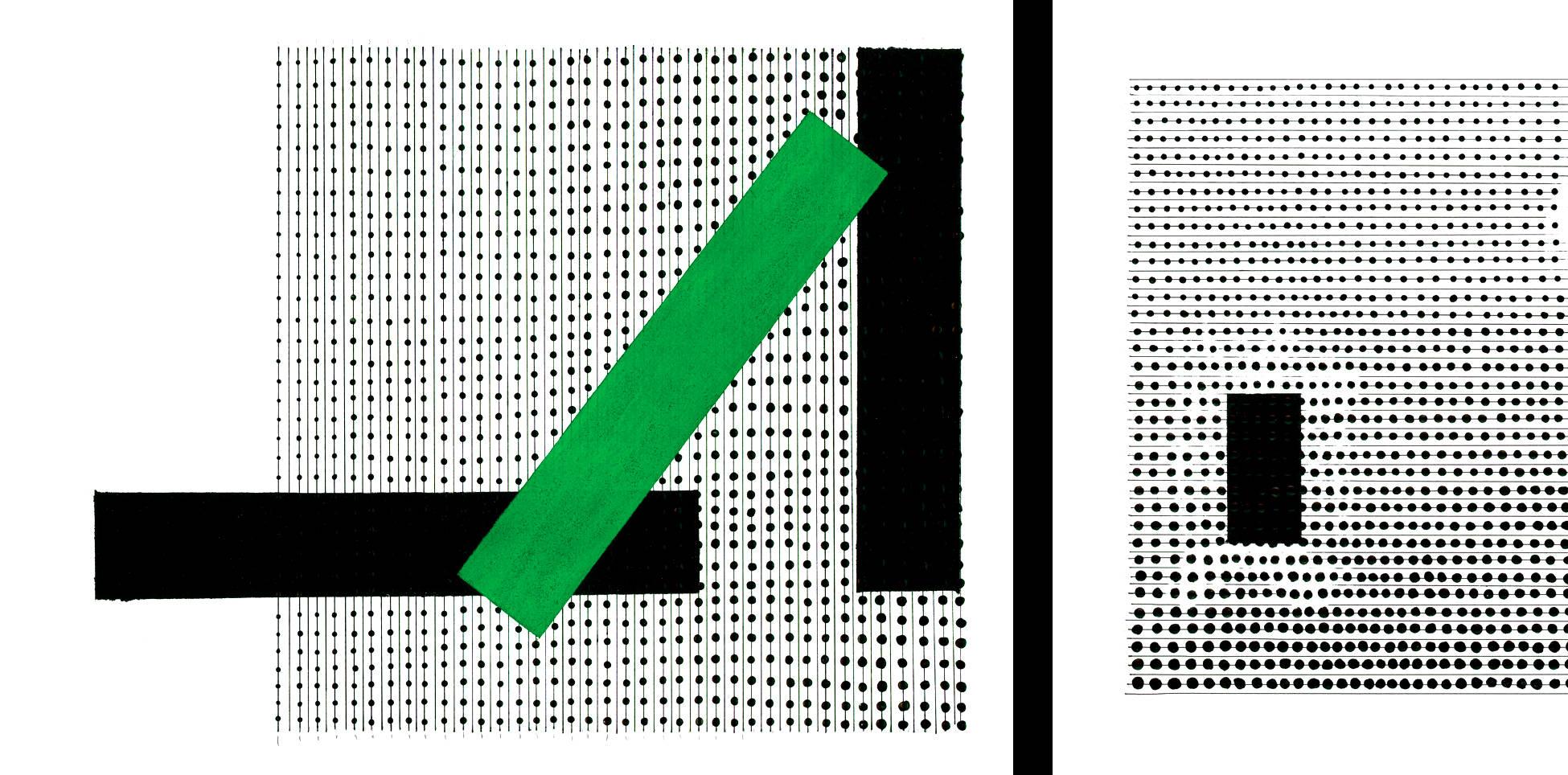 In order to connect the design to Sakamoto’s music, I created a series of paintings of acrylic gouache on paper which captured a form of “notation” based on the shapes and monochromatic patterns I inherently associated with his music. Each painted piece came to be a “notation” of a separate composition of my favourite of Sakamoto’s albums, andata. These pieces came to become the inspiration for the form of the house, with solid volumes being placed in an endless sea of noise (in this case, the natural context of the park itself).