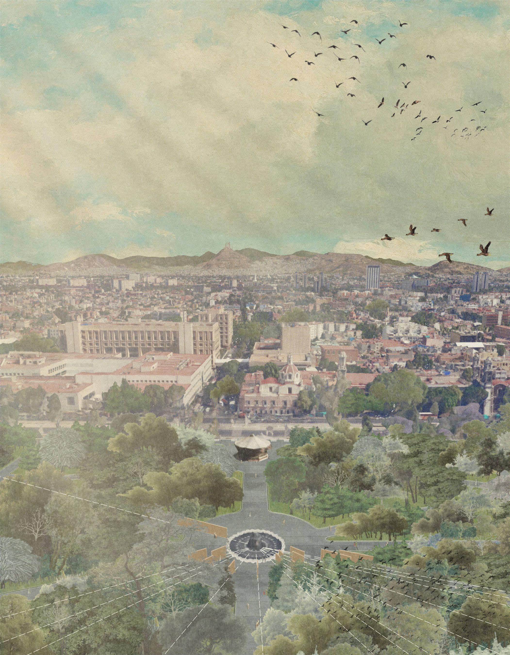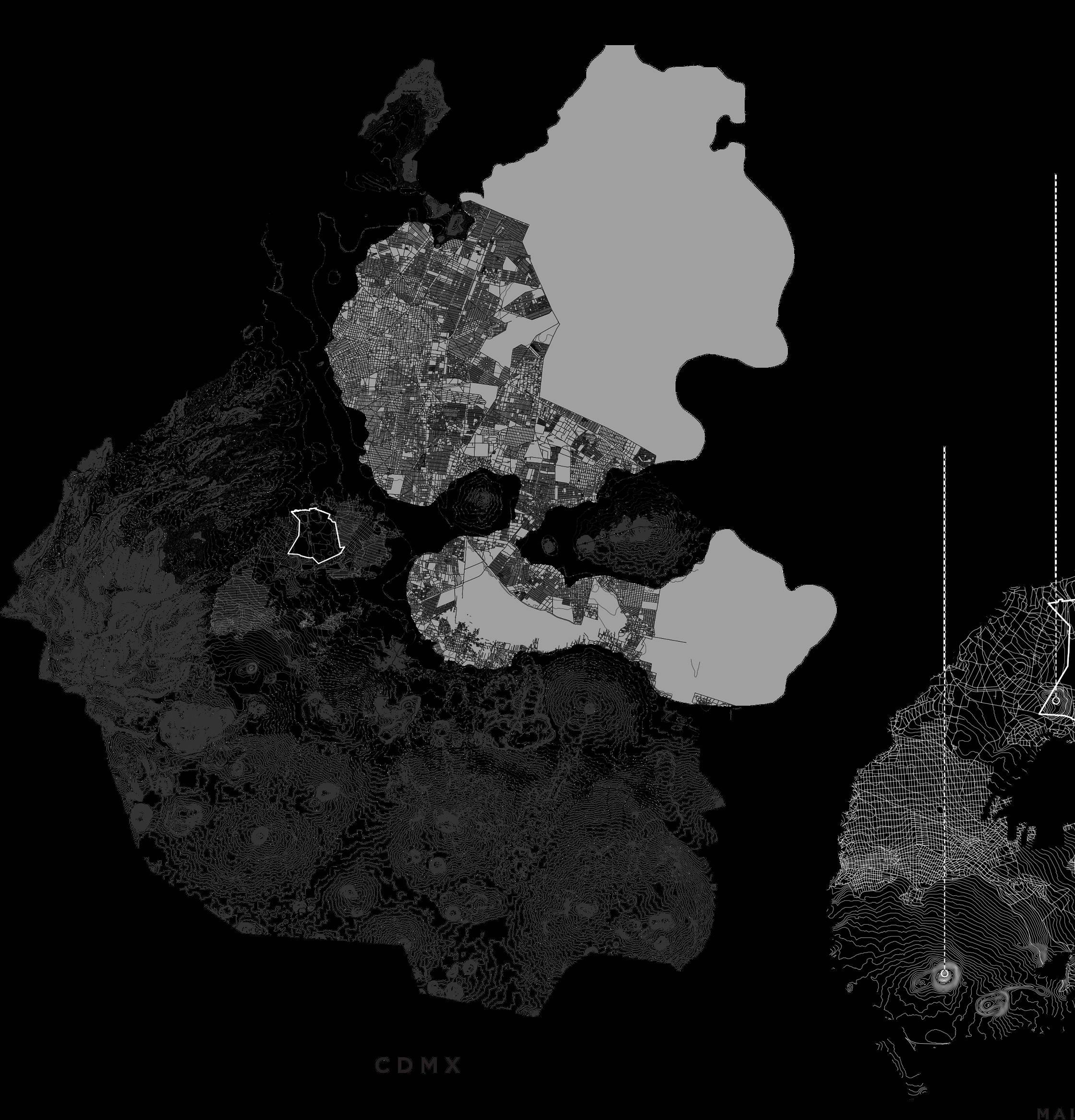 Selected drawing made for the Arquine Mextropoli 2023 Competition. Individual work and drawing, for the projects “Voces de la tierra” (Voices of the Earth), a temporary monument made to the major earthquakes that occurred in Mexico in the previous 25 years.