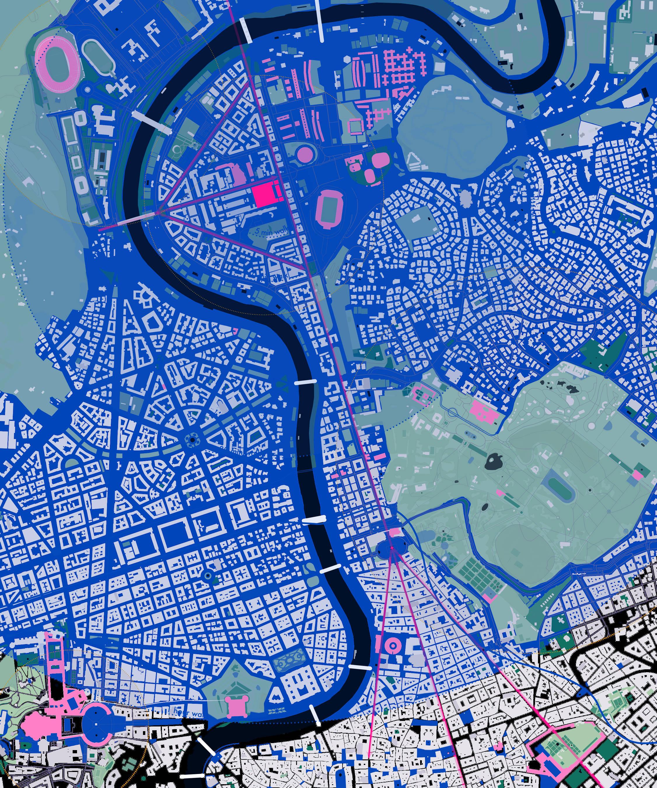 Oil and City and the solo thesis exhibition “Oil Future/Past” explored the entanglement of oil extraction and urban form across Baku, Tampico, and Comodoro Rivadavia—three cities transformed by petroleum industries in the twentieth century. Combining archival research, cartographic analysis, and speculative design, the 130-page written thesis examined how geological, political, and economic forces shaped housing, infrastructure, and collective identity in these petro-cities. The culminating exhibition presented a series of maps, diagrams, and conceptual proposals, including speculative designs for the adaptive reuse of offshore oil platforms, inviting viewers to consider how extractive landscapes might be reimagined as spaces of civic possibility.