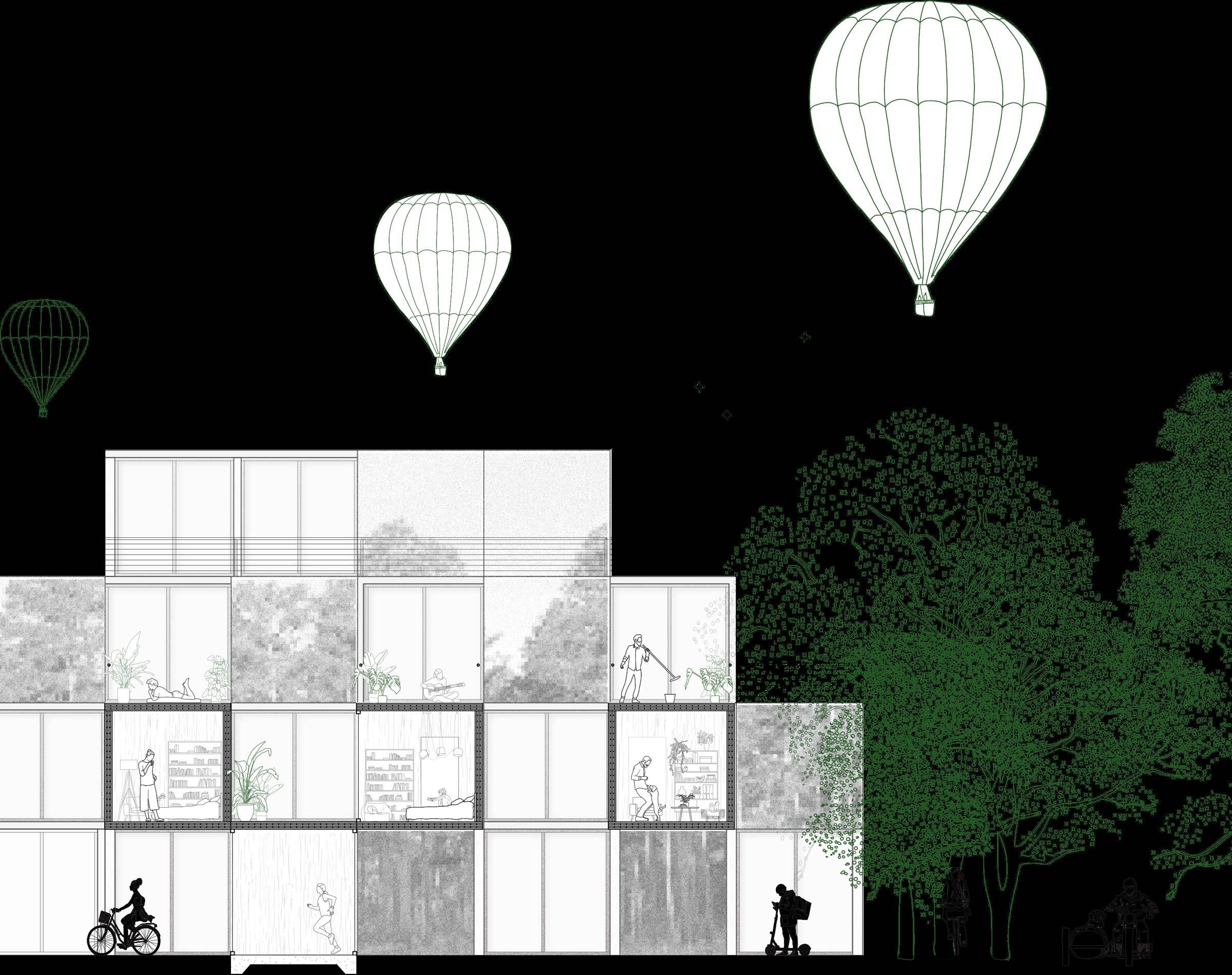 Through a component based design structure the basic prototype block building can be endlessly adjusted and customized, from the scale of the unit allowing for more diversity in tenants to the presence of a more aesthetically diverse urban city scape, avoiding monotony in design and promoting a more colorful community.