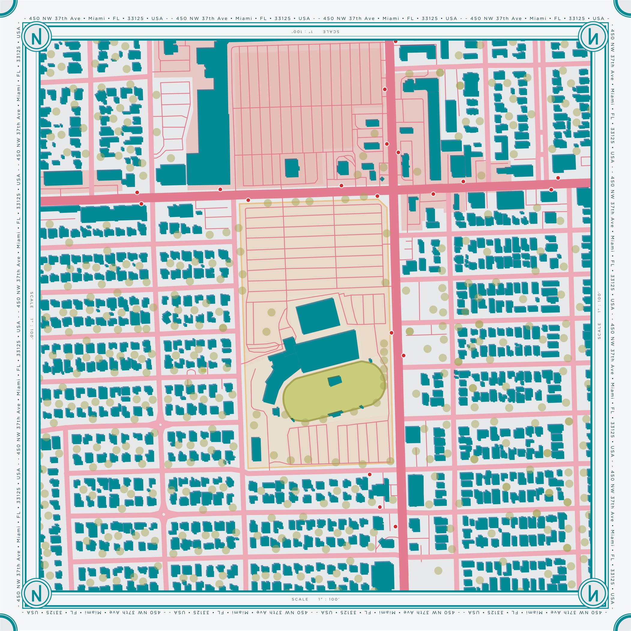 An initial urban masterplan exercise kicked off the studio, using the large Magic City Casino, located on the edge of Little Havana and Flagami in Miami. Currently an extensive parking lot with a casino and defunct dog racing track, the idea was to redevelop the site into higher density mixed-use housing to act as a prototype for the current single-family residential model in the area.