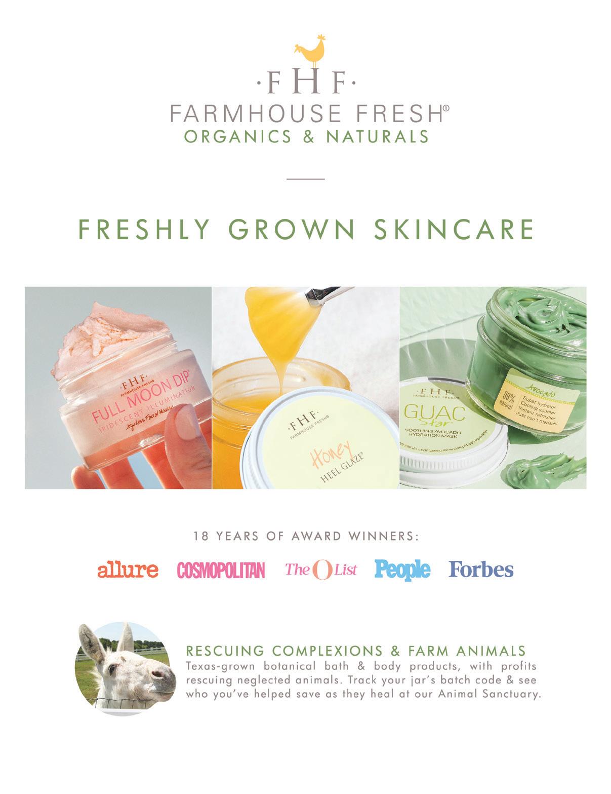 FarmHouse Fresh’s award-winning skin and body products are made from plants grown sustainably on their Texas farm.