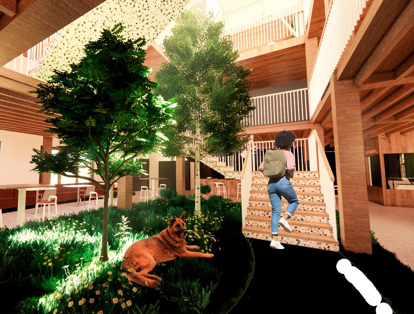 Soulstice is a student wellness and pet therapy center that embodies the power of interaction. The design concept is inspired by the solstice, a time when the sun’s path reaches its highest or lowest point, symbolizing a change in seasons and the potential for renewal. The solstice represents the connection and interatcion between the Earth and the Sun and how that effects our life on earth. Soulstice is a place where students can connect with themselves, others, and animals, fostering a sense of community and well-being.