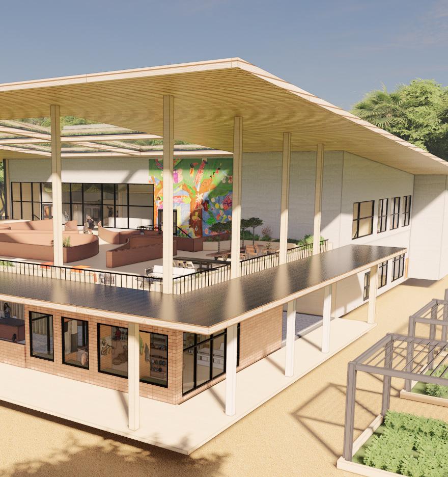 The canopy deck is an elevated walkway above the community garden with breathtaking views of the rainforest. This space not only features informative signs about rainforest ecology but also serves as a tranquil retreat for community members to relax and reap the benefits of connecting with nature.