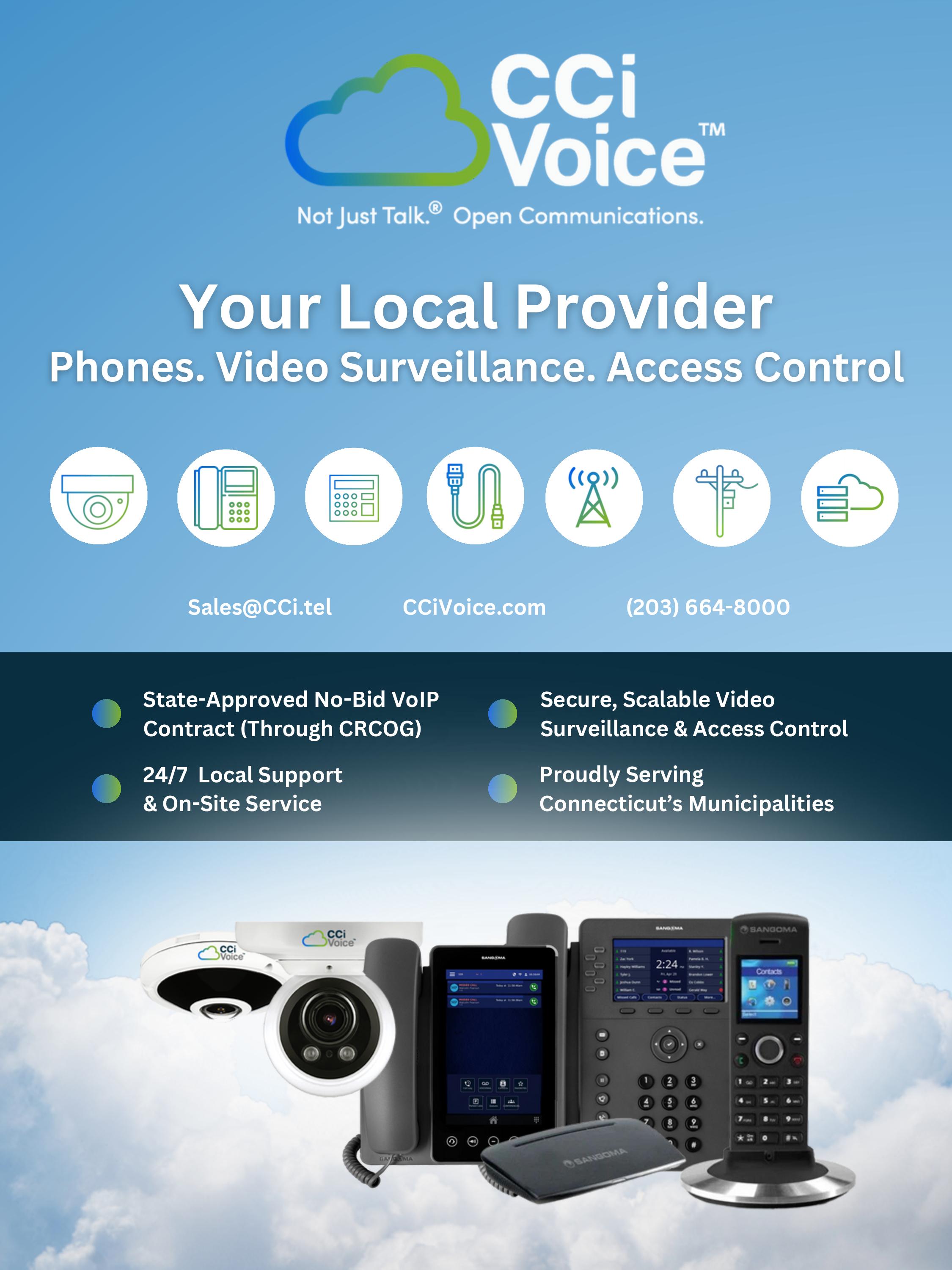 schools, and libraries across Connecticut. With roots in the telecommunications industry dating back to 1968, we bring decades of experience helping public-sector organizations modernize critical communications and security infrastructure. We design, deploy, and support integrated technology systems that improve day-to-day operations while strengthening safety, reliability, and continuity of service. Through the Capital Region Council of Governments (CRCOG), CCi Voice is a state-approved, no-bid provider, allowing municipalities and educational institutions to procure solutions efficiently and compliantly. In addition to core communications and security services, we have expanded our capabilities to include mass notification and emergency alerting tools that enable faster, clearer communication during critical incidents. These solutions support real-time alerts, multi-channel delivery, and coordinated response across staff, first responders, and the public when it matters most. What sets CCi Voice apart is our commitment to local partnership and service. Our clients receive personalized system design, proactive support, and 24/7 live assistance from a team that understands the unique needs of public-sector environments. CCi Voice — Not Just Talk. Open Communications.