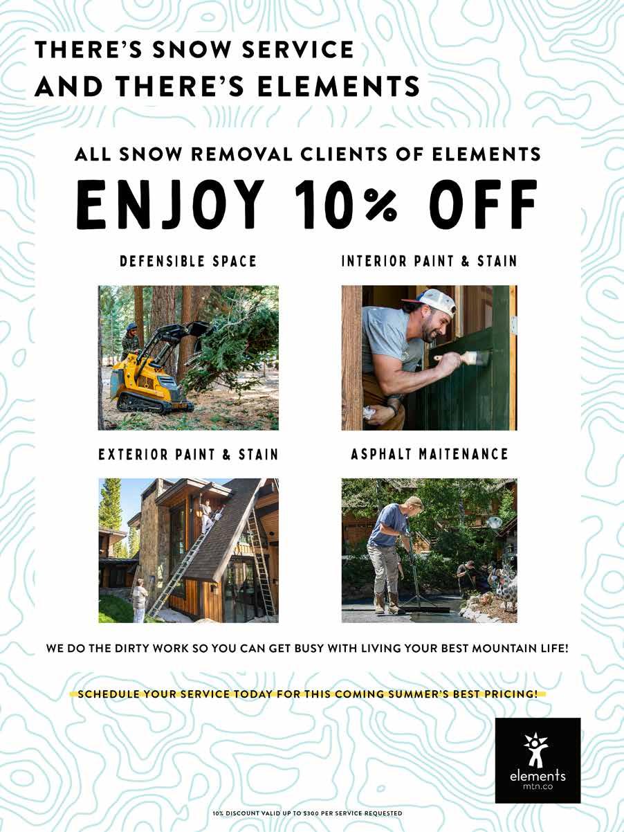 EACH MEMBERSHIP PARCEL RECEIVES ONE SUBSCRIPTION TO A DOMESTIC ADDRESS. COST TO PRODUCE AND DISTRIBUTE THIS PUBLICATION IS OFFSET BY ADVERTISING REVENUES. PERIODICALS POSTAGE PAID AT TRUCKEE, CA, AND ADDITIONAL MAILING OFFICES. MEMBER LETTERS TO TAHOE DONNER ARE PUBLISHED IN THE MEMBER PORTAL; DETAILS AVAILABLE AT TAHOEDONNER.COM/MEMBER-LETTERS.