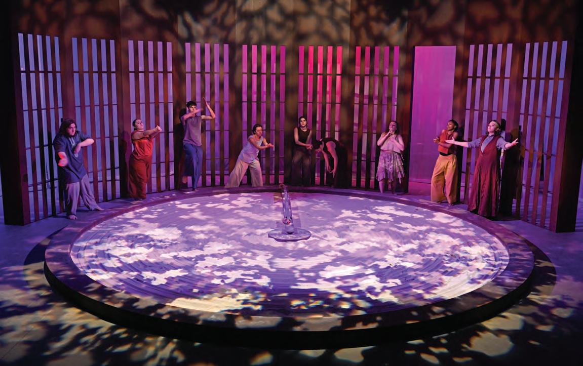 “The Department of Theater’s approach to our main stage productions is that they are all opportunities for facultystudent research,” Jaffe said. Visits from Professor Emeritus of Philosophy Larry Vogel and Visiting Assistant Professor of Classics Devon Harlow enriched the students’ learning process, while Associate Professor of Dance Rachel Boggia supplied choreography and movement expertise and Musician/Composer for Dance Richard Schenk provided vocal and musical guidance. Students studied four other translations, Greek tragedy form, the culture from which these plays
