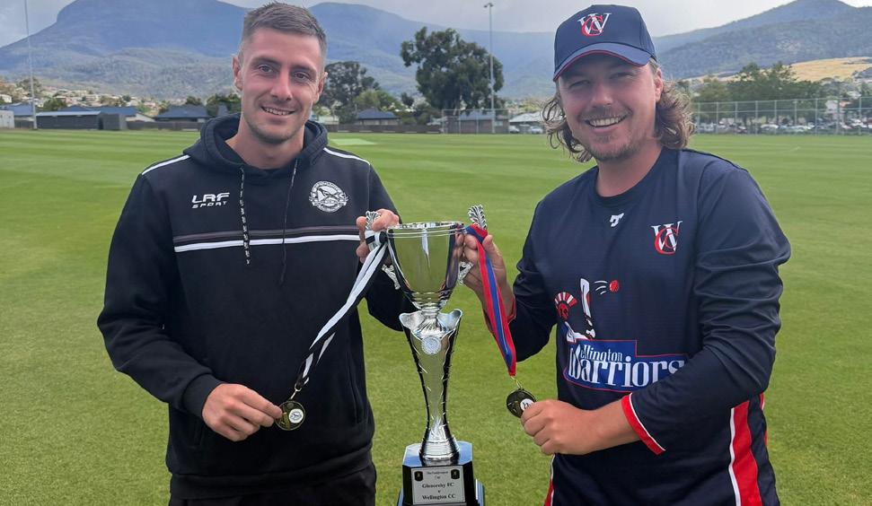 the clash followed a year of friendly barbs between captains Matthew Bromfield and Adam Roberts, after Glenorchy’s victory last season, and attracted a bumper crowd at Glenorchy Oval. Winning the toss, Wellington skipper Bromfield elected to bat and was quickly tested