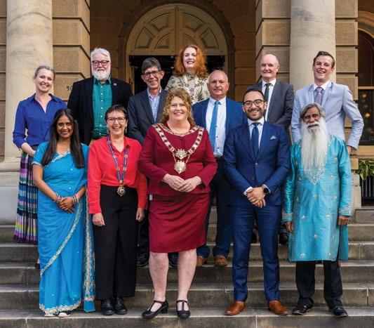 Bottom row: Councillor Zelinda Sherlock, Deputy Lord Mayor Councillor Helen Burnet, Lord Mayor Councillor Anna Reynolds, Alderman Simon Behrakis and Councillor Mike Dutta.