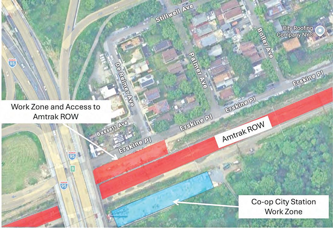 Starting this week and extending until February 23, crews will be working within Amtrak’s Right of Way parallel to Erskine Place. Notably, this work will occur between 8 p.m. and 7 a.m. during overnight shifts. MTA officials noted that “there may be an increase of trucks and noise-generating equipment in the area,” but assured those near the construction that their contractor “has a sound mitigation plan in place com-