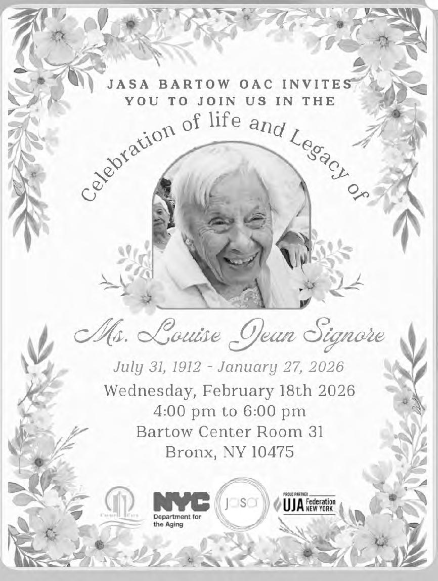 Services will be on Saturday, February 21, at McCall’s Funeral Home, 4035 Bronxwood Avenue, Bronx, NY 10466. Viewing is at 9 a.m. and funeral at 10 a.m. sharp.