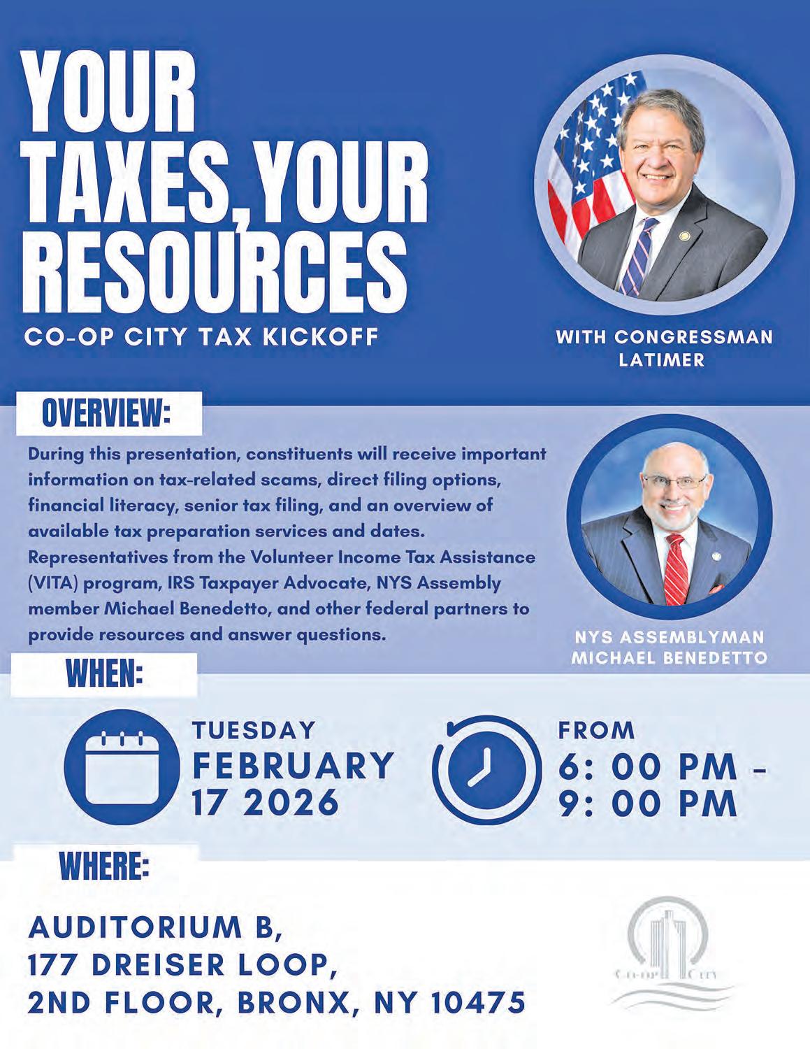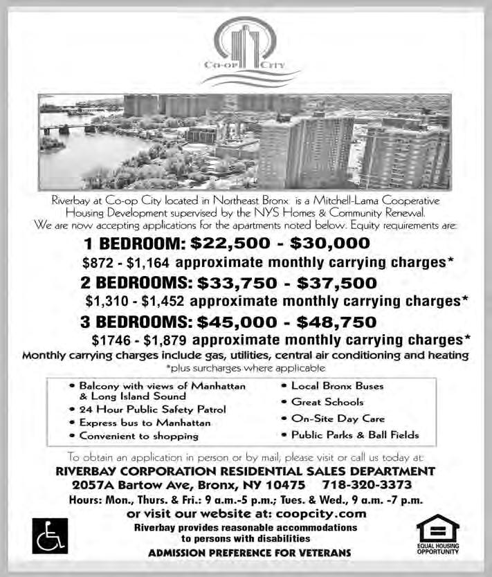 The Co-op City Times is YOUR community newspaper! If you have news you’d like to share with your neighbors, LET US KNOW! Please give us a call at (718) 320-3300, Ext. 3375/7; email: cctimes@riverbaycorp.com or fax (718) 320-2595.