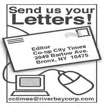 Co-op City is your home. If you have talents, knowledge and expertise that can be helpful and improve the quality of life in Co-op City, share your ideas at coopcity.com. Join your Building Association, contact Riverbay Management or write a letter to the editor. In addition, be sure to VOTE in the annual Riverbay Board of Directors election. It is your responsibility as a cooperator to participate in the election and to remain engaged and informed.
