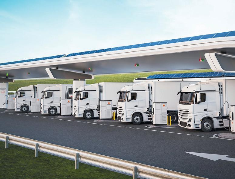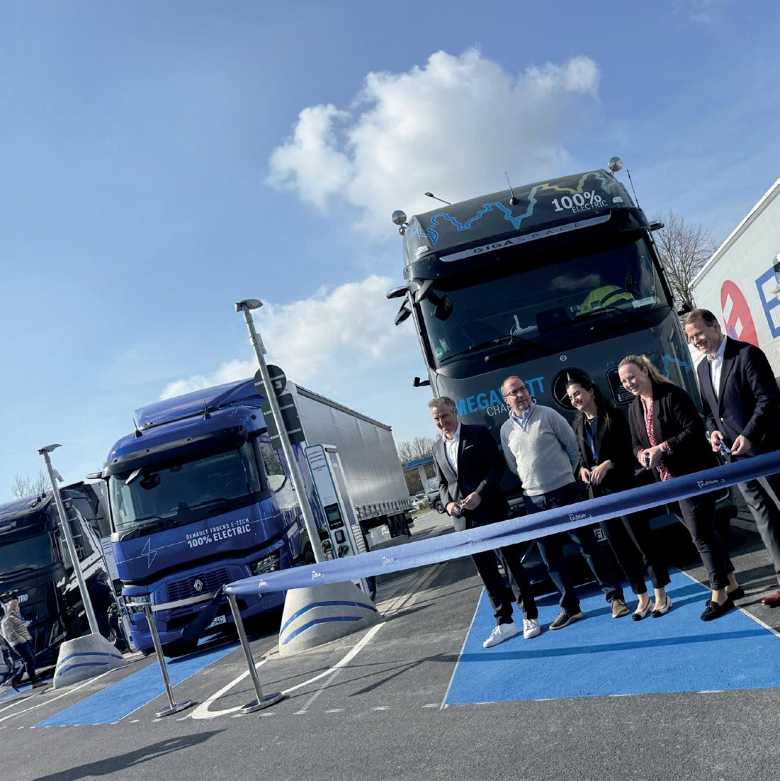 Auch für die Elektrotrucker zählt das möglichst angenehme Drumherum, das den professionellen Ladestopp zu einem Gute-Laune-Faktor macht. Die Megawattsäulen sollten mit dem 40-Tonner jederzeit einfach gefahren werden und die entsprechend groß dimensionierten Ladebuchten am besten frühzeitig reserviert werden können. Der obligatorische Gang zum stillen Örtchen, die Dusche, ausgewogenes Essen und ein bisschen Einkaufen vielleicht. Eine kleine sportliche Einheit nach den Stunden im LkwSitz? So kann die Langstrecke im batteriegetriebenen Lastzug auch für den Fahrer optimiert werden.