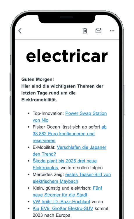 Das electricar Briefing erscheint aktuell wöchentlich. Entscheiden Sie selbst, welche Themen Sie interessieren und wo Sie gerne weiterlesen möchten. Beim nächsten Office- oder Kunden-Smalltalk geben Sie mit diesen News die Themen vor.