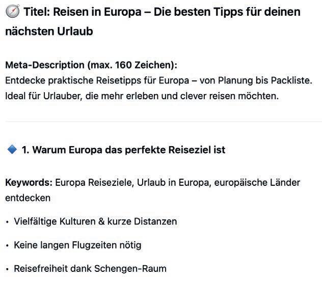 Künstliche Intelligenz ist nicht länger Zukunftsmusik – sie ist mittlerweile ein Teil des Alltags geworden. Ob in Arbeitsprozessen, in der Kommunikation, im kreativen Scha en oder in der Datenanalyse: KI-gestützte Systeme schreiben Texte, generieren Bilder, programmieren, planen, strukturieren – und unterstützen dabei, Aufgaben schneller und e zienter zu bewältigen.