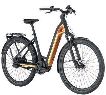 Modernste Technologie, umfangreiche Ausstattung und optimierte Sitzgeometrie – mit diesen Attributen glänzt das neue E-City-Bike der Marke Pegasus. Der kraftvolle Akku mit einer Kapazität von 600 Wh ist in den Hydroforming-Rahmen eingebettet und lässt sich mit nur wenigen Handgri en entnehmen und extern aufladen. Das 2,8 Zoll große Display am Lenker ist gegen Staub und Spritzwasser geschützt und dient in Kombination mit der eBike Flow App als Navigationssystem. pegasus-bikes.de