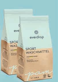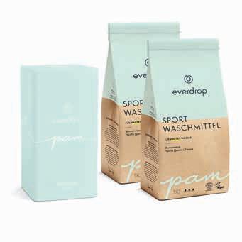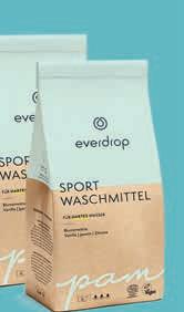 In Zusammenarbeit mit der Fitness-Influencerin Pamela Reif hat das Münchner Start-up everdrop ein nachhaltiges Waschmittel speziell für Sportkleidung entwickelt. Statt Mikroplastik und schädliche Chemikalien kommt ein natürliches Enzym zum Einsatz, welches die gleiche Reinigungsleistung wie herkömmliche Waschmittel erzielt. Ätherische Bio-Öle verleihen den Wäschestücken einen angenehmen Duft, der sehr stark an eine Blumenwiese erinnert.