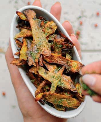 Natürlich darf zu den Feiertagen und in den Ferien gutes Essen nicht fehlen. Ab Seite 44 finden sich daher Rezepte für Fingerfood, ein Vorschlag für ein dreigängiges Festmenü und vegane Bäckereien. Dazu haben wir uns Unterstützung geholt – von Bio-Pionieren wie der Ölmühle Moog und Byodo sowie den Kulinarikprofis Sandra und Kevin von Farm to Table, die Hamburger Köchen in die Töpfe schauten, um Gusto zu machen.