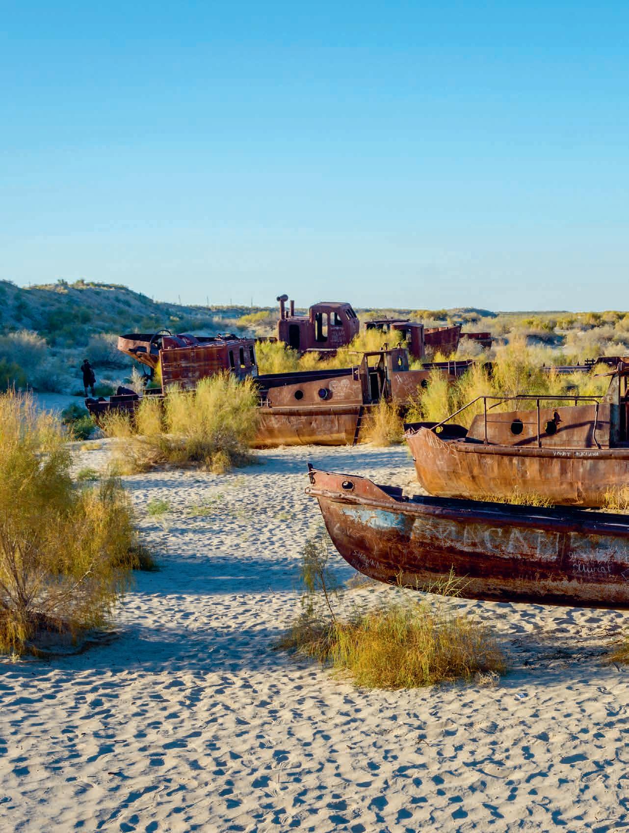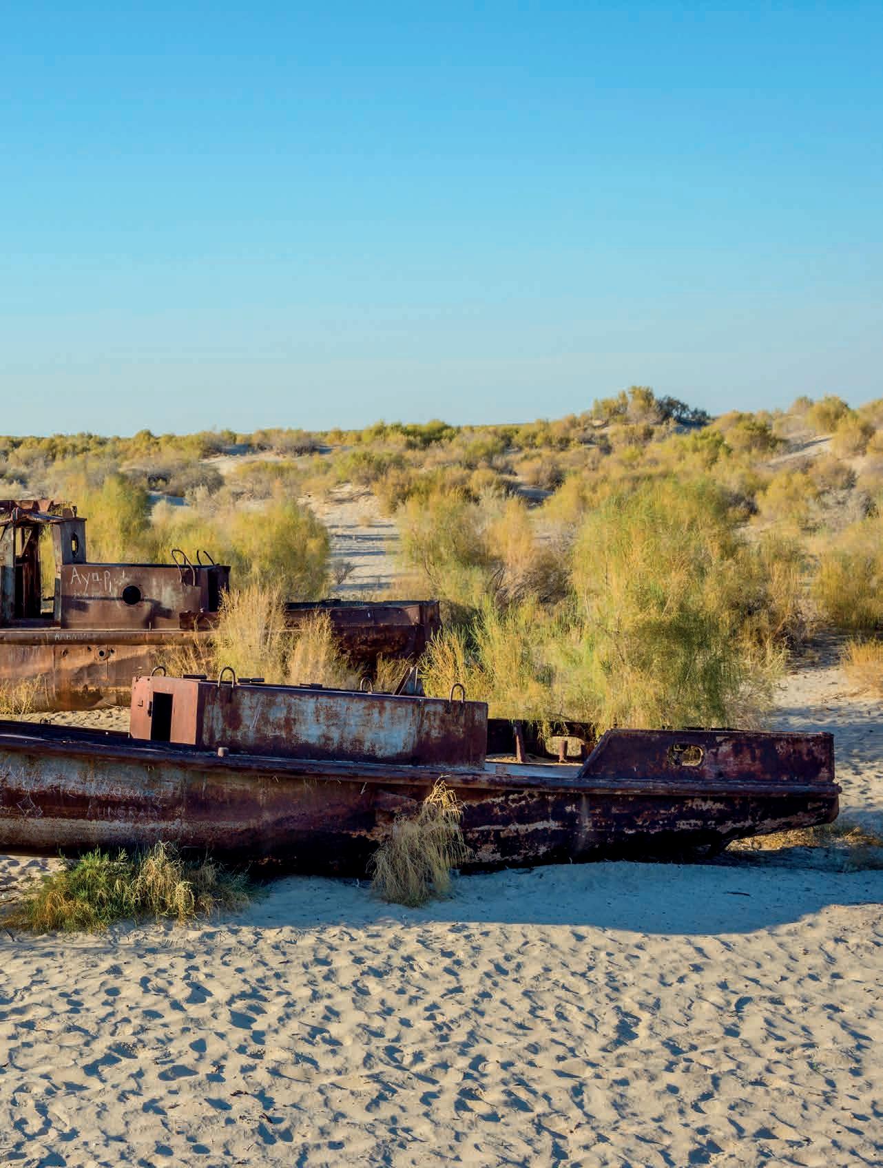 Liter Wasser werden schätzungsweise für die Herstellung eines Baumwoll-T-Shirts benötigt. Dies entspricht einer Menge, die eine Person in 2,5 Jahren trinkt. Der mit dem Baumwollanbau einhergehende Wasserverbrauch hat in den letzten Jahrzehnten zur Austrocknung des in Zentralasien gelegenen Aralsees geführt (siehe Bild).