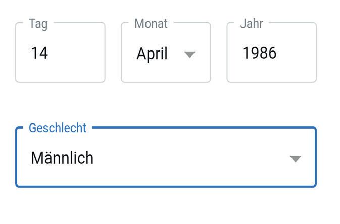 Zu Beginn müssen Sie Ihren Vor- und Nachnamen eingeben und danach auf die Schaltfläche „Weiter“ tippen. Im nächsten Fenster geben Sie nun Ihr Geburtsdatum b und Ihr Geschlecht c an und tippen erneut auf „Weiter“.