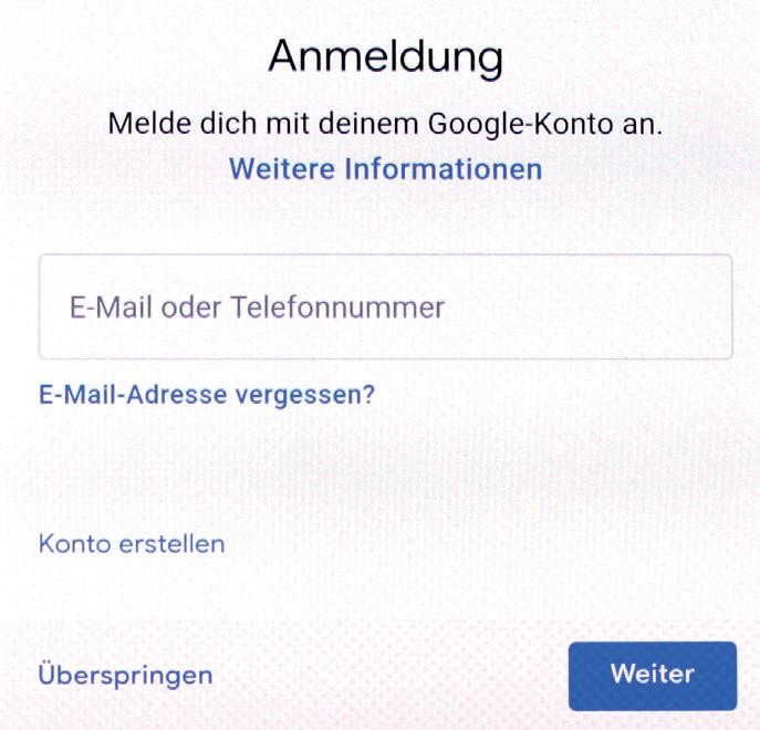 Google-Account in das entsprechende Feld ein k und tippen auf „Weiter“ l