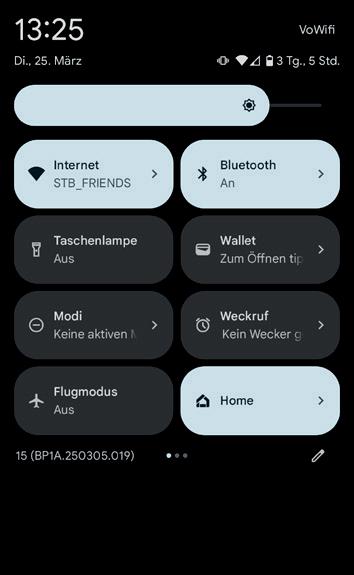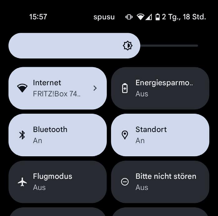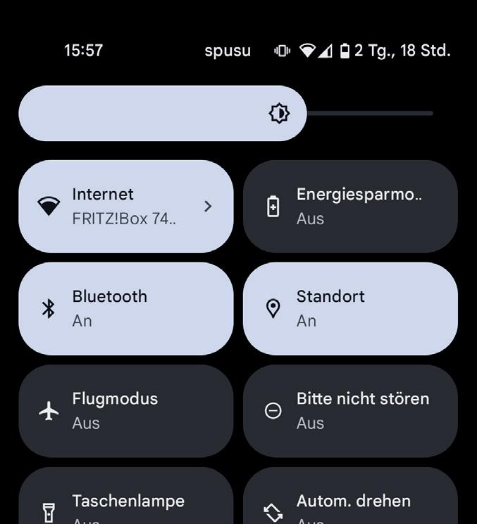 Die Schnelleinstellungen öffnen Sie durch einen Wisch von ganz oben nach unten. Hier können Sie beispielsweise den Flug- oder Energiesparmodus oder die mobilen Daten durch Antippen ein- bzw. ausschalten.
