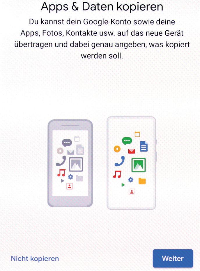 neues Gerät einrichten wollen. Daher tippen wir auf „Nicht kopieren“ g
