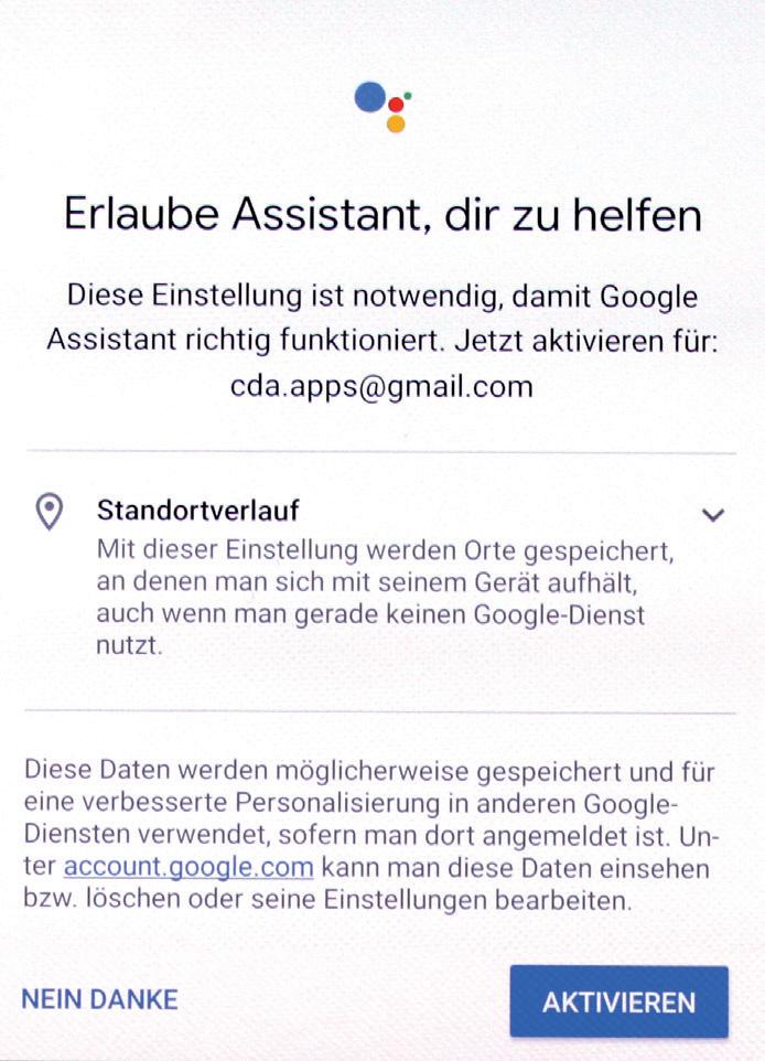 Sie können jedoch auch mit der Einrichtung fortfahren, und als nächstes etwa den Google Assistant aktivieren. Dazu tippen Sie auf „Weiter“ s .