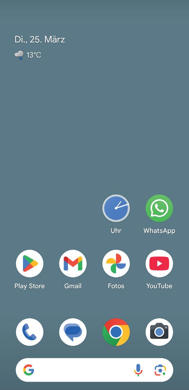 Der Hauptbildschirm - in der Fachsprache auch Homescreen genannt - ist der zentrale Ausgangspunkt Ihres Smartphones. Je nachdem, wie voll der Homescreen ist, kann sich dieser auch auf mehrere Seiten erstrecken. Über den Homescreen können Sie beispielsweise mit nur einem Wisch die App-Übersicht und die Schnelleinstellungen öffnen. Durch das Einfügen von Widgets - dies sind kleine Informationsfenster die man auf dem Homescreen platziert - verpassen Sie ihm eine individuelle Note. Mit ein bisschen Fingerspitzengefühl lassen sich auch die App-Symbole - kurz Icons - mühelos verschieben und neu anordnen. Auf dieser Doppelseite erklären wir Ihnen unter anderem auch, wie Sie dem Homescreen ein neues Hintergrundbild verpassen.