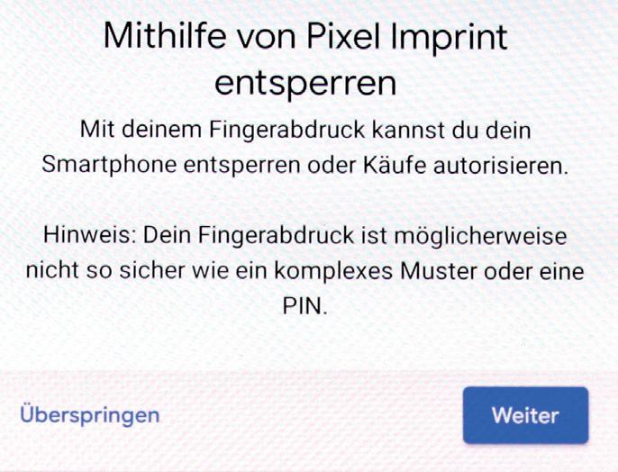 Sofern Ihr Gerät einen Fingerabdruckscanner besitzt, können Sie diese Funktion hier aktivieren p oder auf Wunsch auch überspringen q