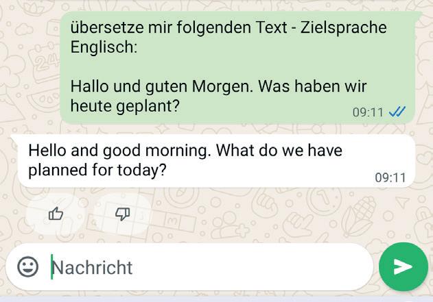 Aber auch Texte lassen sich schnell und einfach in andere Sprachen übersetzen. Dazu geben Sie der KI die Anweisung, welche Sprache ausgegeben werden soll.
