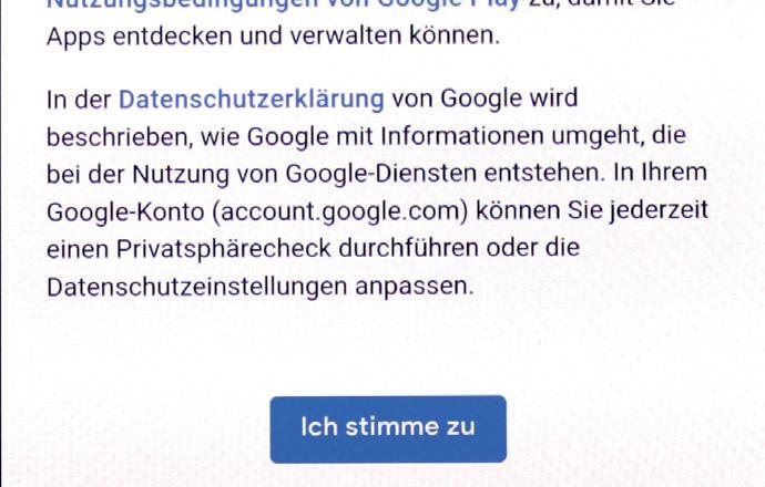 Sie noch die Nutzungsbedingungen und die Datenschutzerklärung von Google akzeptieren. Dies machen Sie, indem Sie auf „Ich stimme zu“ m tippen. g