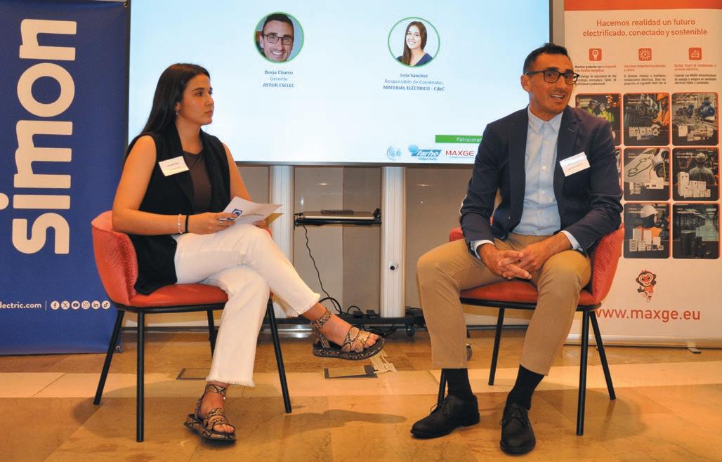 Lola Sánchez, responsable de contenidos del Área de Material Eléctrico, moderó la segunda mesa redonda con Borja Charro, gerente de Astur Eselec.