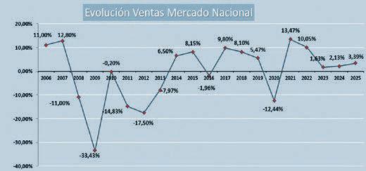 Las ventas en el mercado nacional del sector crecen un 3,39 % en 2025
