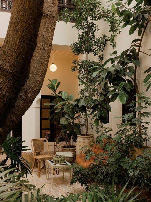 The fashion crowd has been coming to Marrakech since Yves Saint Laurent and Pierre Bergé made it their chic Paris getaway from gray French winters. In recent years, there has been an explosion of hotel openings catering to people who love the city’s louche good taste. One of the latest is the ROSEMARY riad, the perfect retreat for designdriven, culturally curious travelers who value craftsmanship, art, and authenticity. It’s like someone’s soulful private home, standing in opposition to the more conventional luxury offerings in the city. The building was restored and designed by architectural historian Quentin Wilbaux, who has worked on 150 properties in the Marrakech medina. The interior vision was led by Laurence Leenaert, known for the handpainted ceramics, rugs, and sculptural works she creates for LRNCE, the brand she runs with her husband. Original artworks and design pieces are available for purchase, allowing guests to take their experience home. A 40-year-old jacaranda grows through the heart of the riad, custommade scents fill the air, and the floors glow with thousands of handinserted red marble lozenges. One of the main pleasures is its leisurely breakfasts, made with ingredients fresh from the market and enjoyed in a loungey, unhurried setting. rosemarymarrakech.com.